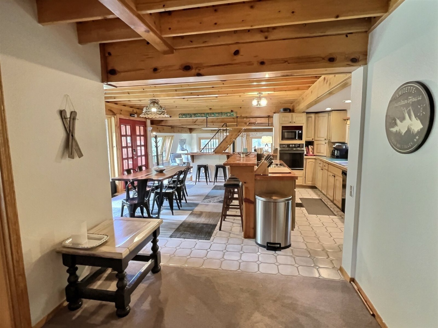 Entryway of the Home Accessing Kitchen, Dining, Living Area, and Stairs to King Suite