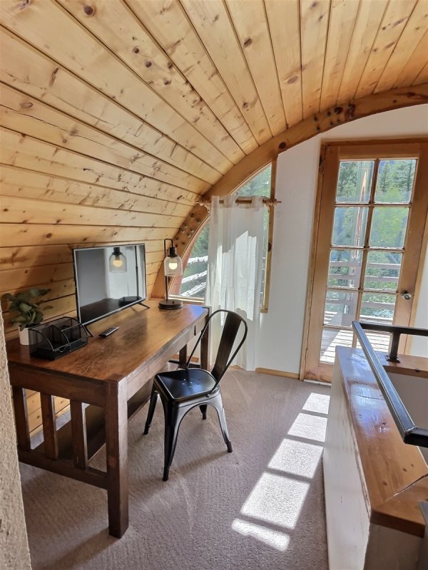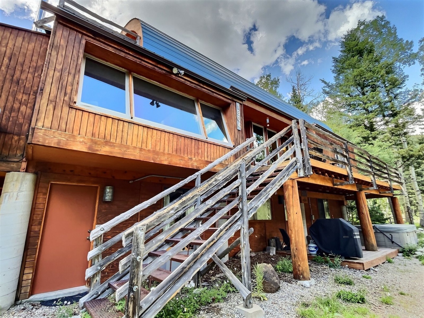 This beautiful, well-stocked and recently updated mountain home is just waiting to welcome your family for some prime mountain time with all the luxuries of home. Great kitchen table seats 6, island bar top seats 4, and second bar seats 4 more! Everything you love about being out in the woods; in summer, camprife smells, dewy mornings, cool evenings and wildflowers, in the winter, the incredible quiet and the glow of the snow in the trees under a full moon - it's just a mile an change from Taos Ski Valley ski resort base area village for world class skiing and European ski heritage, a and all kinds of summer/fall recreation. After a great day any time of year, head in for a blissful night's sleep on high quality beds and bedding. Two full bathrooms. Beautiful second level wood decks with adirondack chairs put you right in the middle of the forest. In summer, birds and butterflies will be winging past, deer or elk could walk right by, and in winter watch for fox, hares, Jays and corvids. Watch the Aspens change color while you sip your morning brew. If it's too cold on the porch, from the kitchen table you look out the big windows look across the Hondo river valley canyon. A propane gas grill, 6 person hot tub and large entertaining livingroom with large smart TV makes this the perfect home for a great getaway. 4WD/AWD REQUIRED IN WINTER (NOV-APRIL) This home can be rented as a larger property including a downstairs apartment with private entrance that sleeps 4.