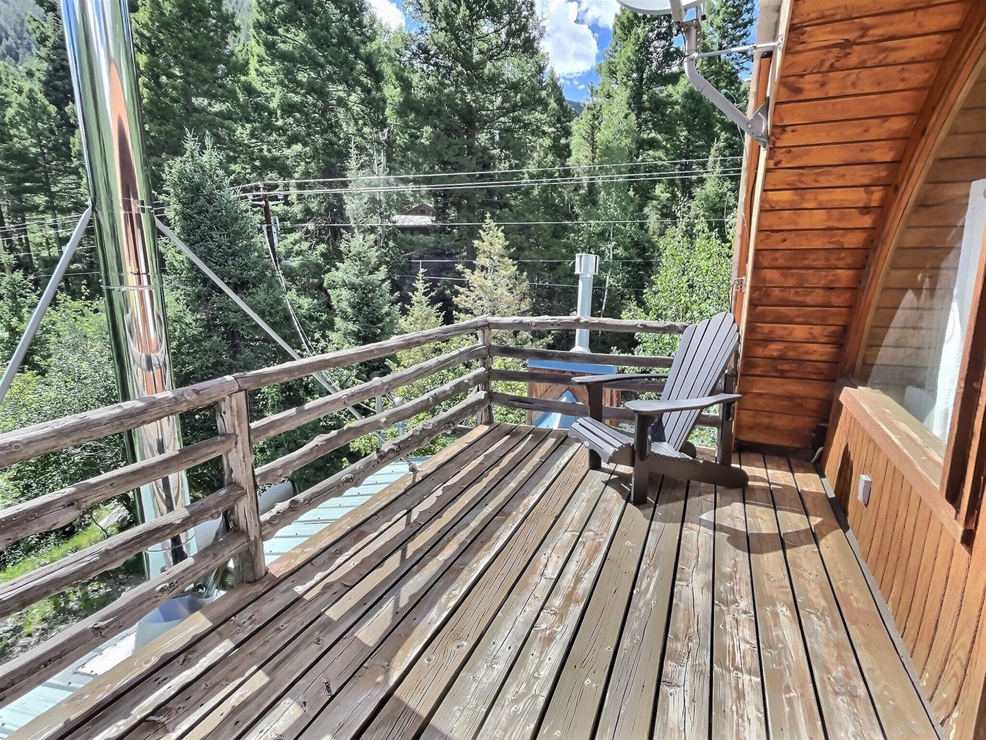 Deck at Entry of the Home with Adirondack Chairs for Great Mountain Relaxation