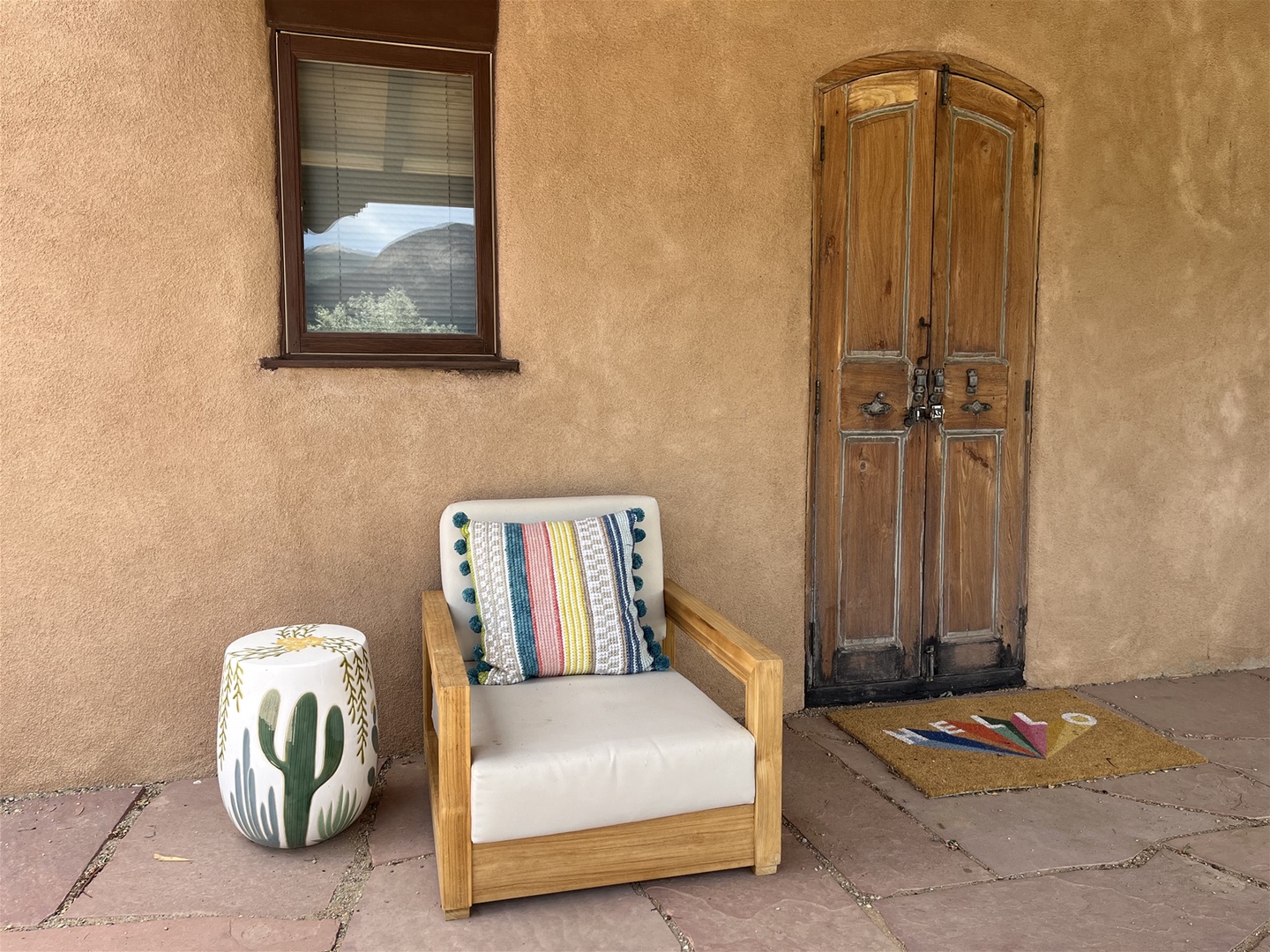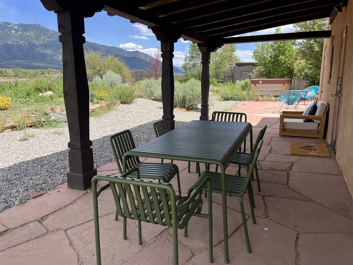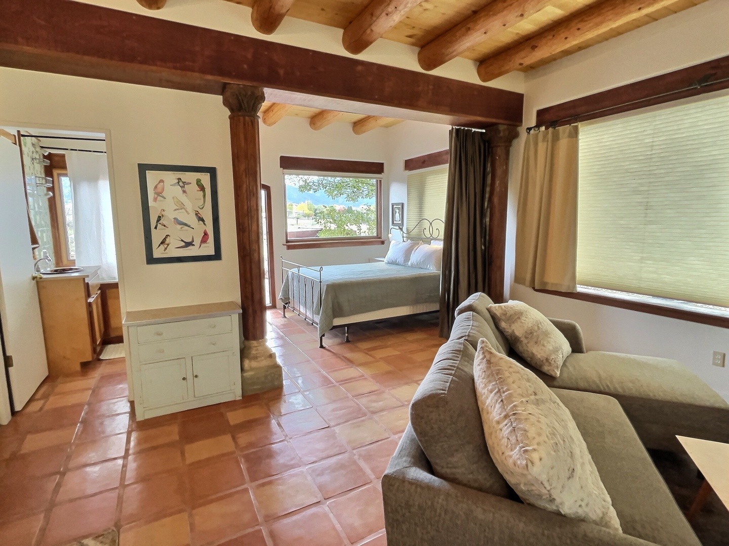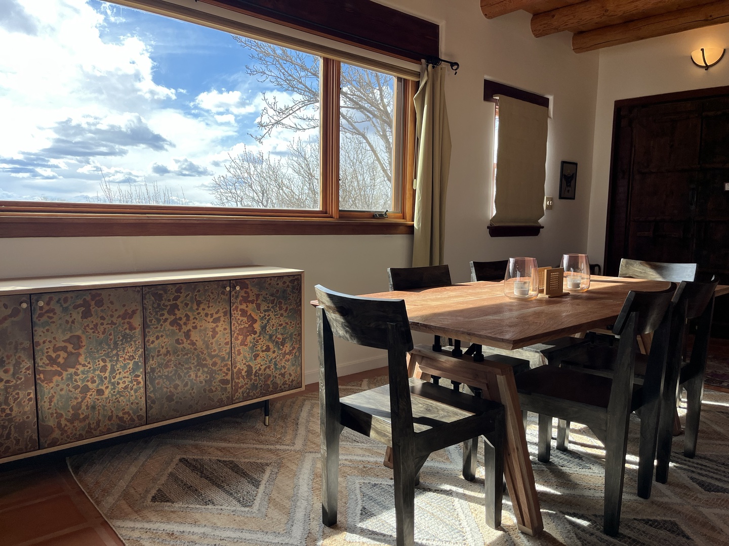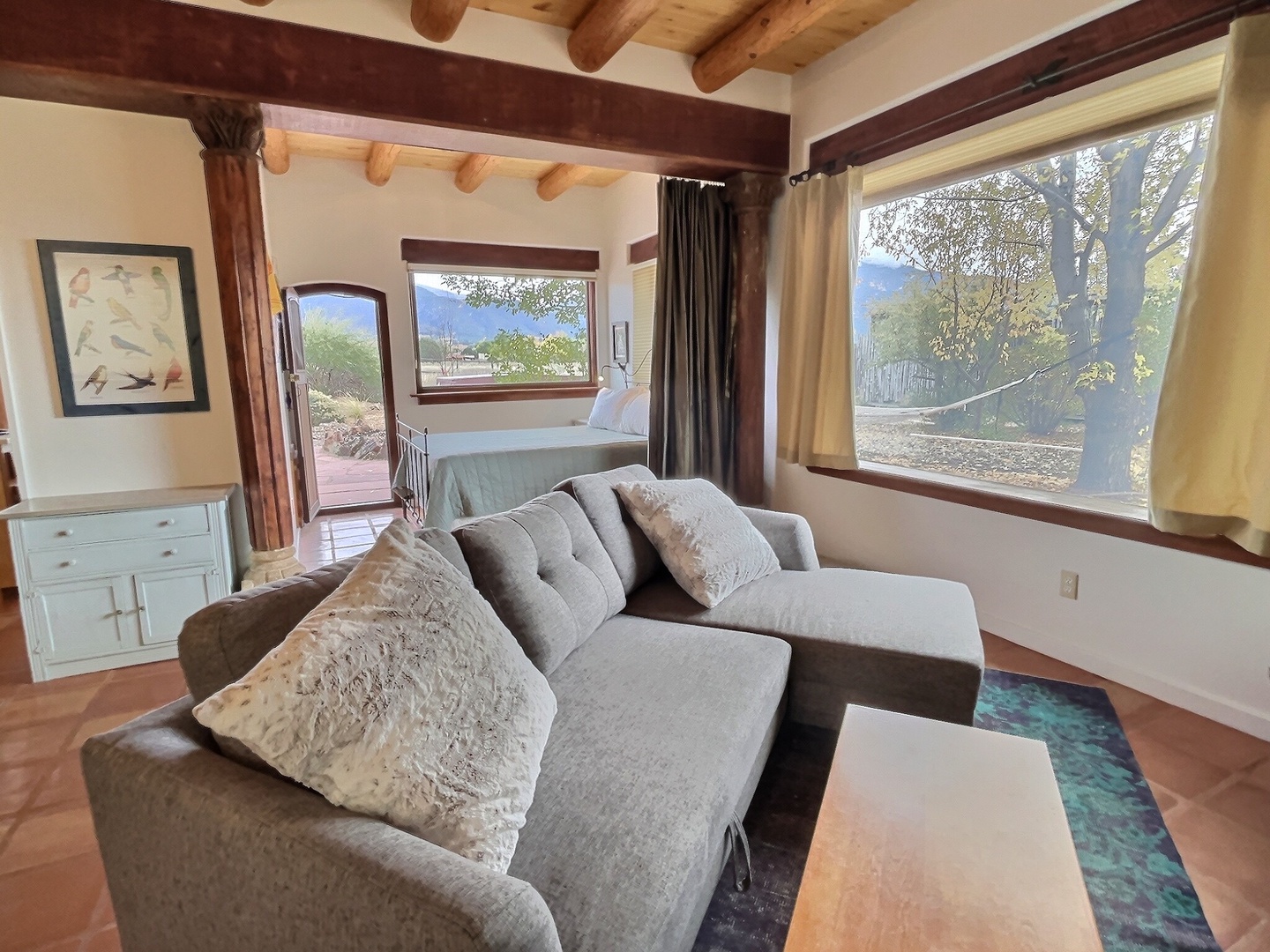 Get ready to explore the best of Arroyo Seco, Taos and Taos Ski Valley from this special perch perfect for a small family or two couples. The unique adobe home featuring several hand carved wood doors and other unusual architectural details sleeps 4 adults, or 2 adults and up to younger 3 children. It is situated on a private dirt road just minutes from the shops, galleries, and restaurants of quaint artisan Arroyo Seco.