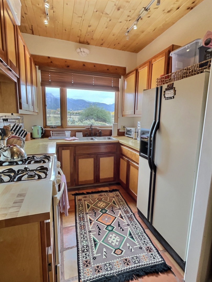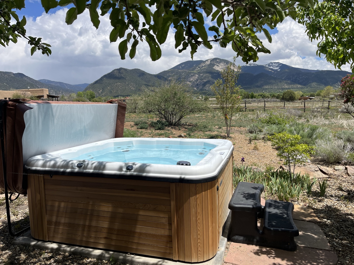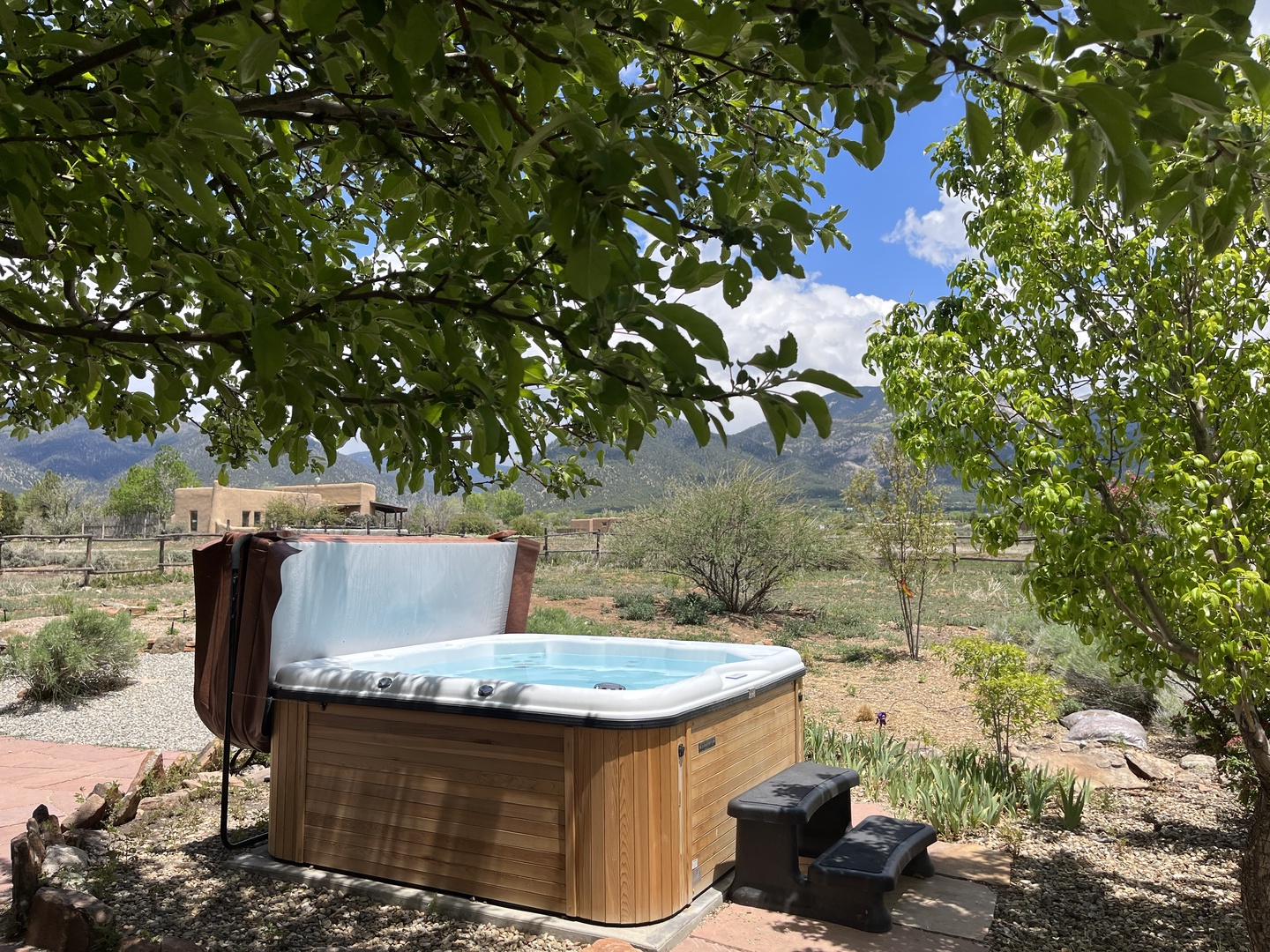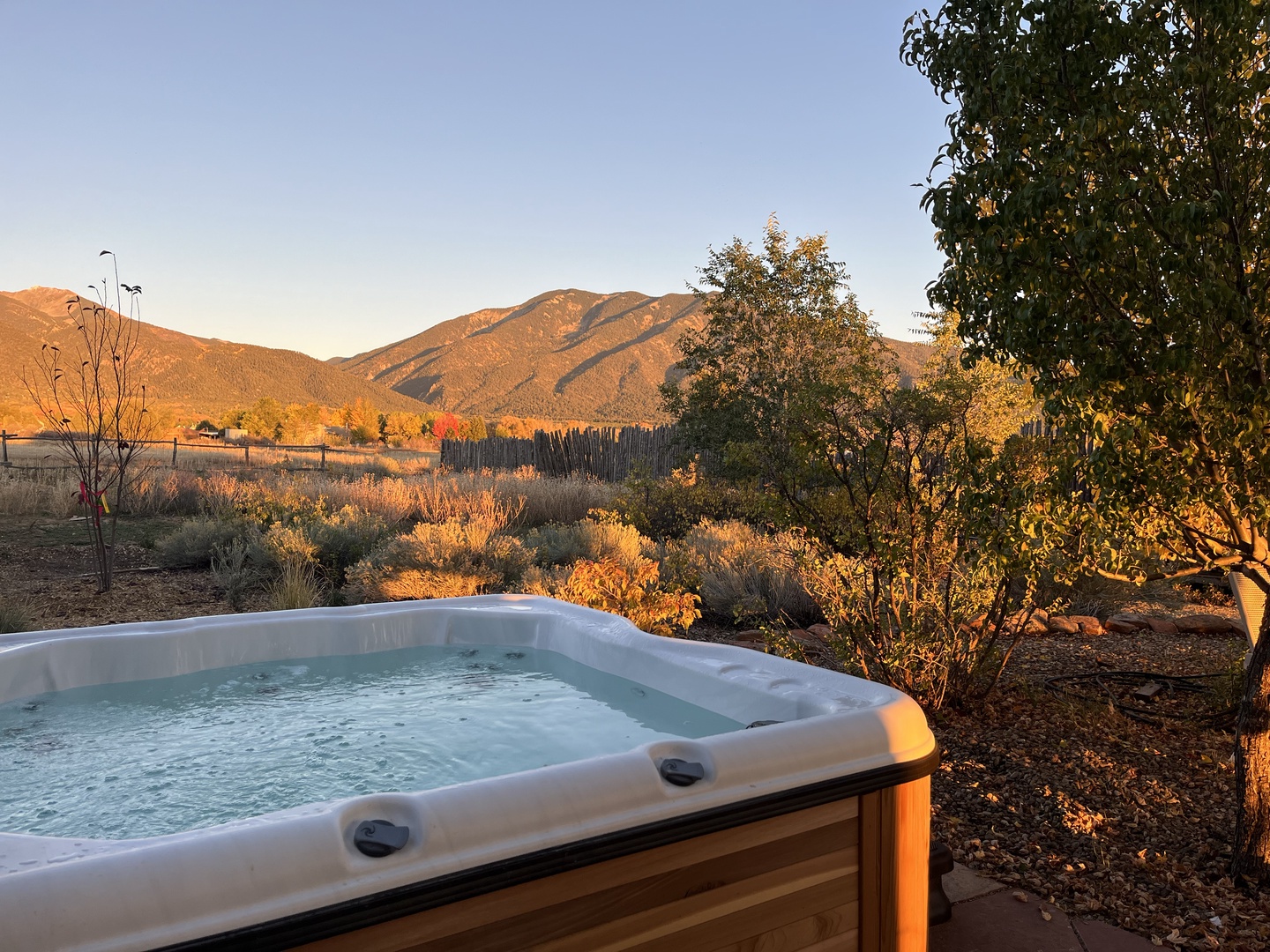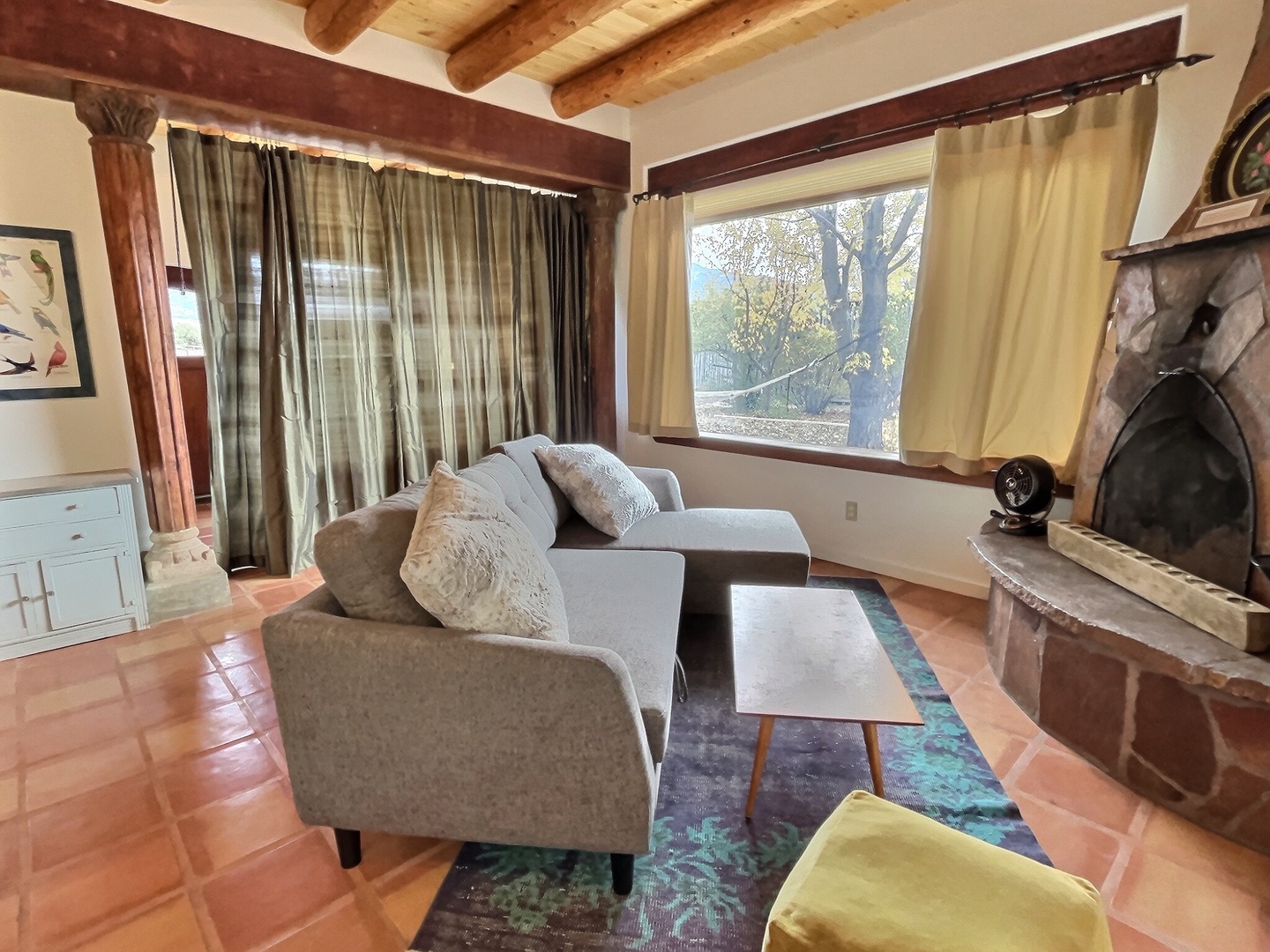 Get ready to explore the best of Arroyo Seco, Taos and Taos Ski Valley from this special perch perfect for a small family or two couples. The unique adobe home featuring several hand carved wood doors and other unusual architectural details sleeps 4 adults, or 2 adults and up to younger 3 children. It is situated on a private dirt road just minutes from the shops, galleries, and restaurants of quaint artisan Arroyo Seco.