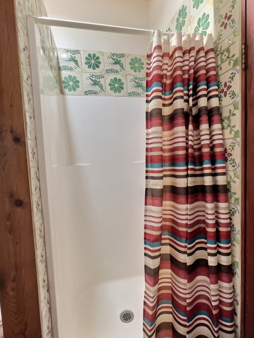 Bathroom accessible by both sides of the house, adjacent to loft, living area and kitchen.