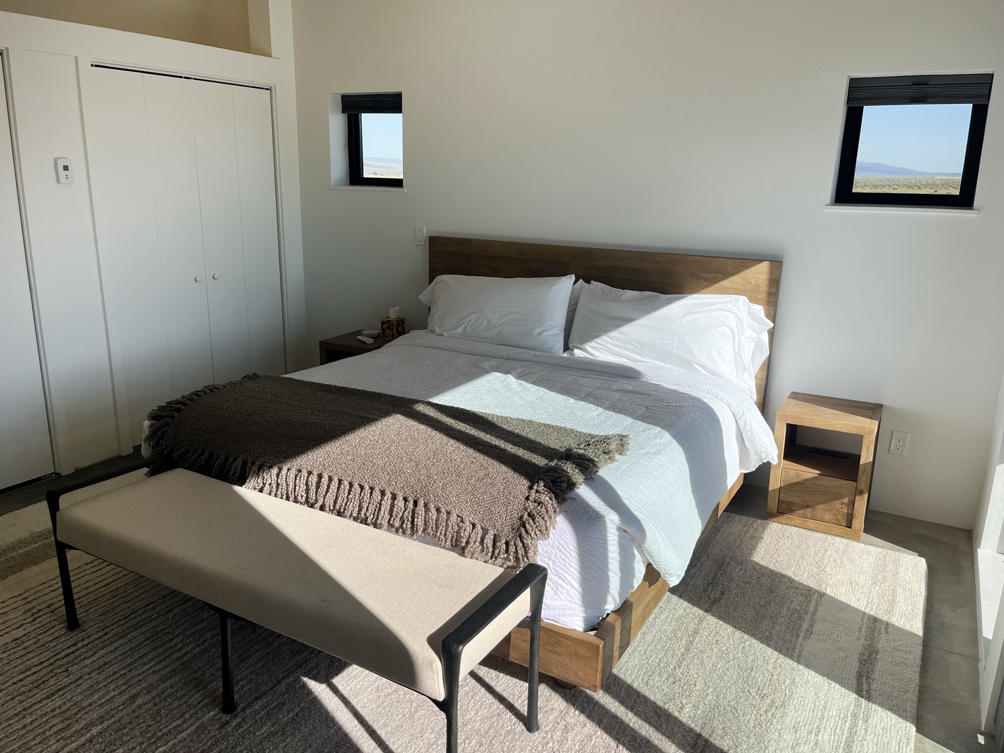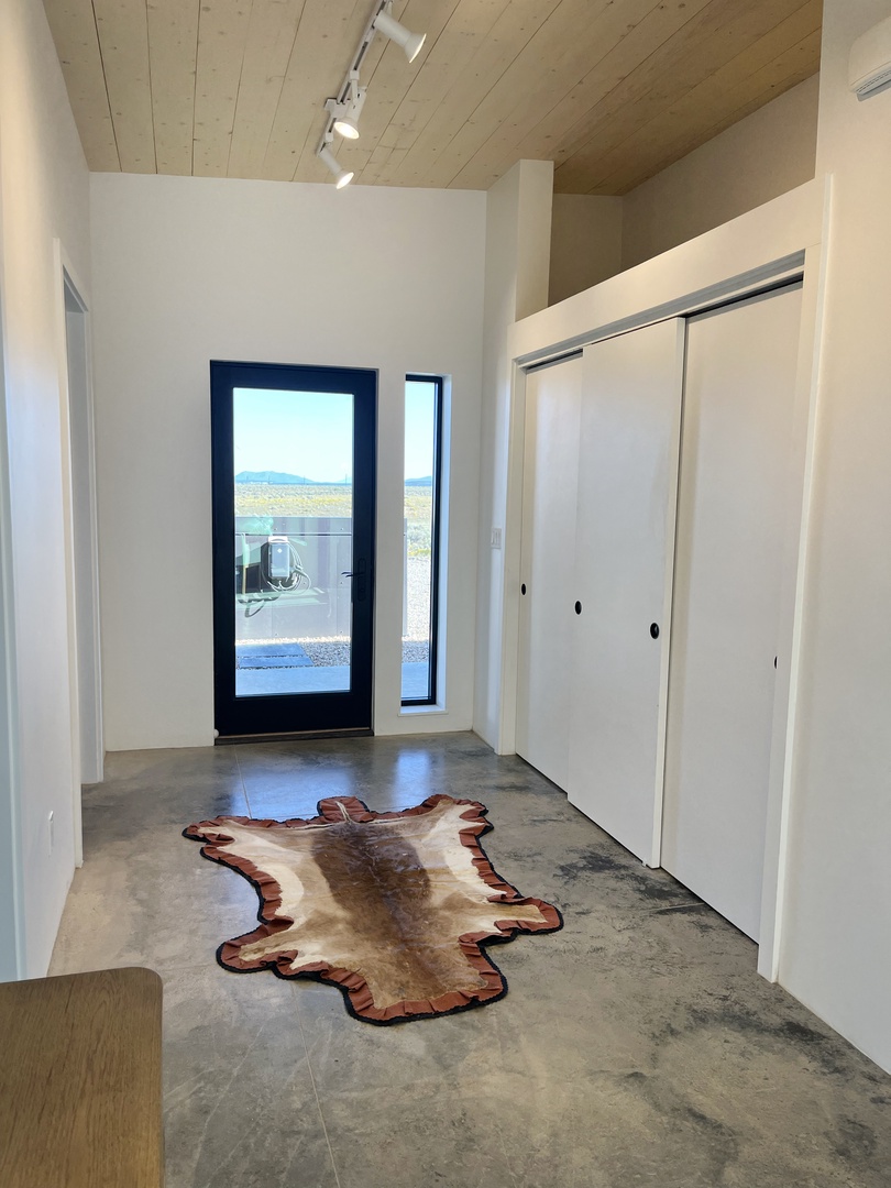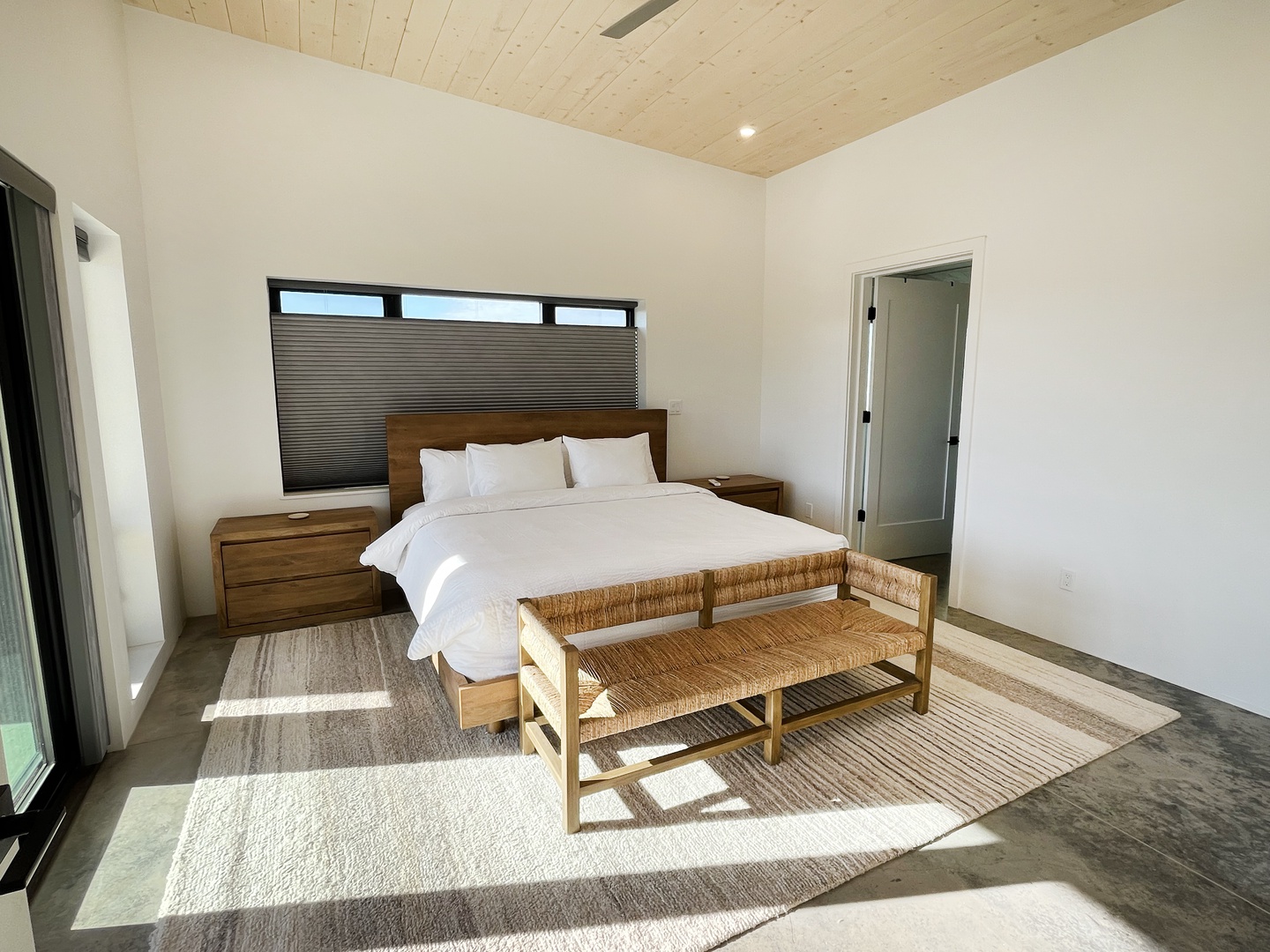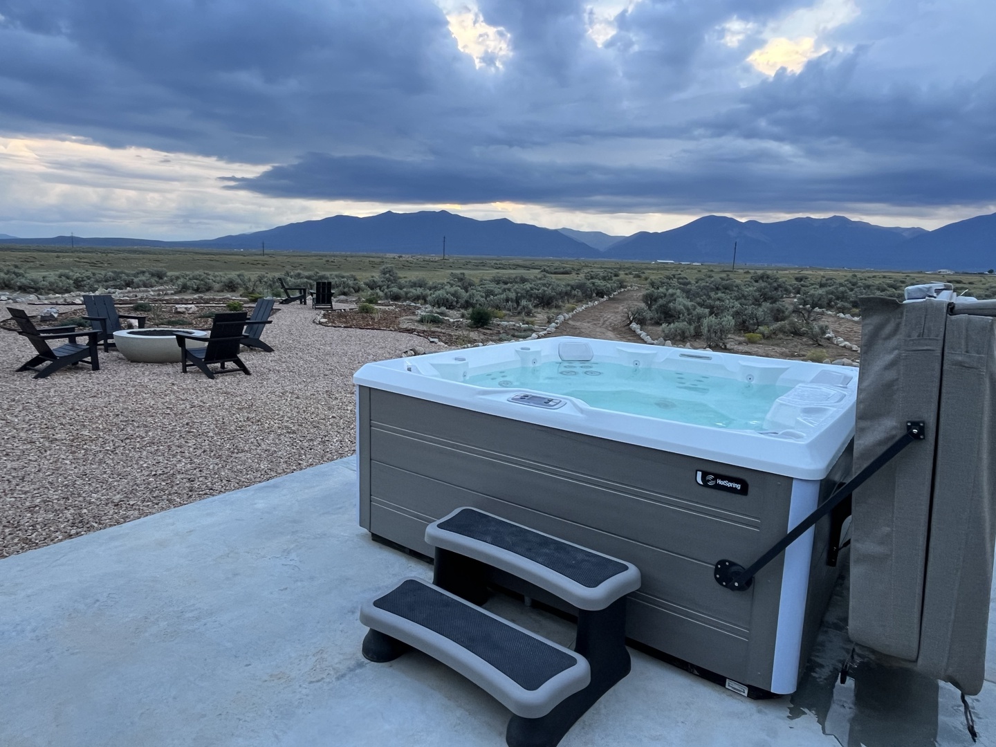 Casa de Luz is a heart melting three bedroom, three bathroom home with modern open concept living dining and kitchen space designed with love and care to let guests relax to the fullest with private indoor outdoor living. Outdoor features include a beautifully landscaped patio with 6 person hot tub, sauna, and cold plunge pool, outdoor shower, Adirondack chair seating and gas fire pit all very private thanks to the design of the home and fence wrapping around the outdoor areas, but open to the mesa and the mountains to the north. Indoor amenities include mini split air conditioning units in the living area and each bedroom. Comfortable livingroom with Samsung Frame TV, fireplace controlled with a light switch, and comfortable furnishings. Casa de Luz offers a well stocked kitchen and dining area for entertaining and large sliding glass doors and screens that open out to the patio create a wonderful indoor/outdoor flow.
