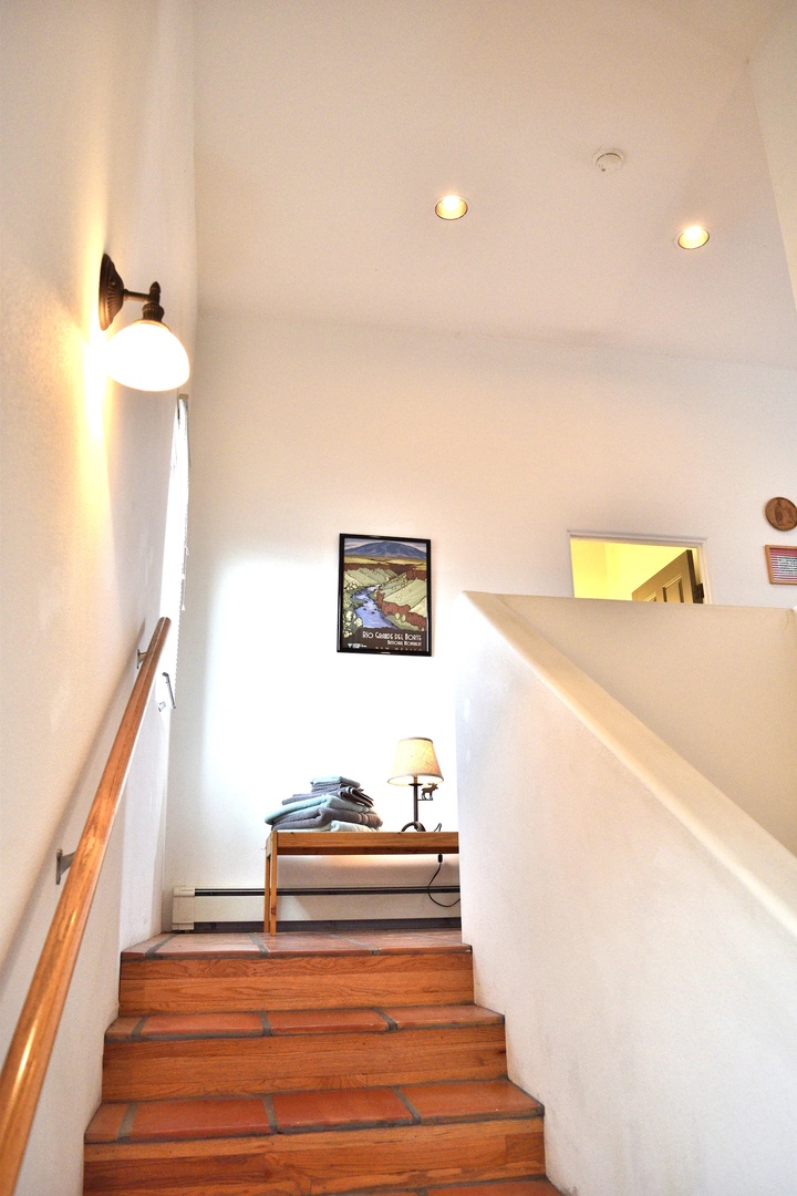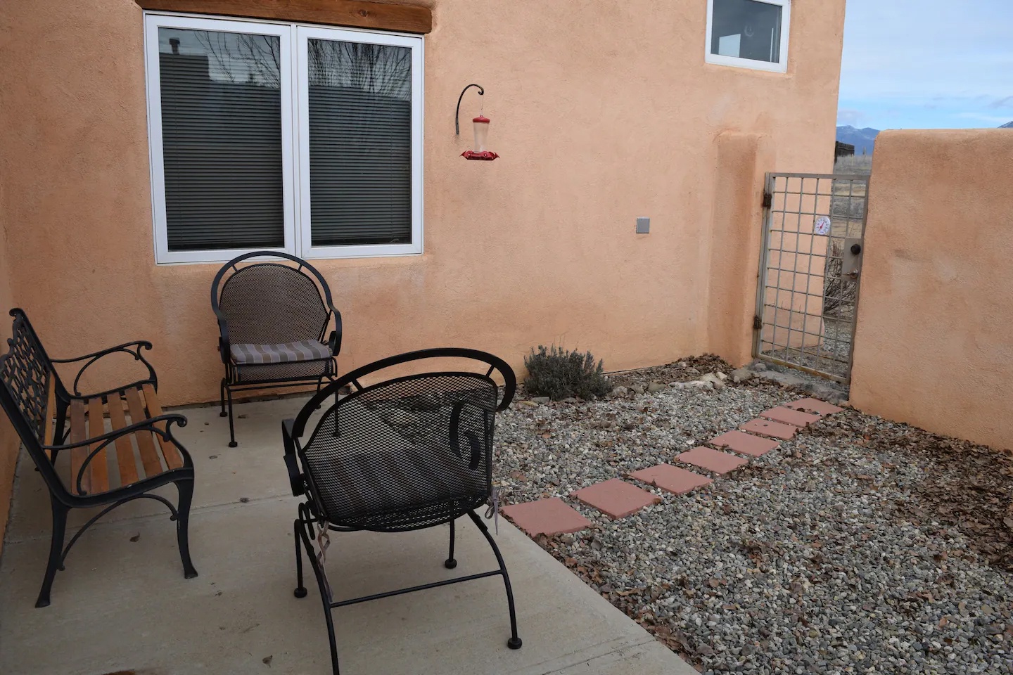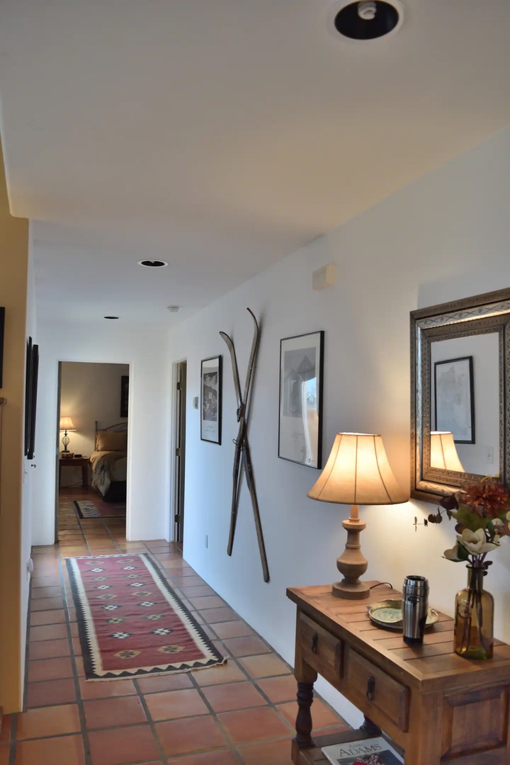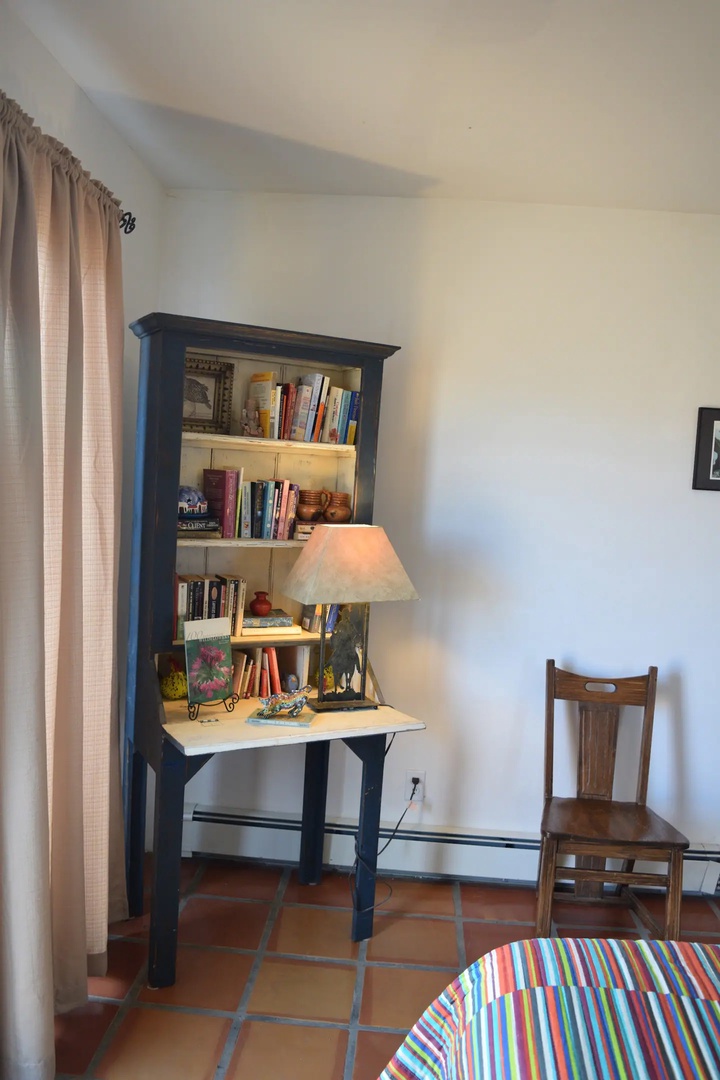 This home is 1,700 sq ft of airiness. Every room has windows and most have views of Taos mountain. The radiant heat keeps the floors warm during the winter along with the gas log fireplace. In summer, enjoy two private outdoor courtyard spaces.