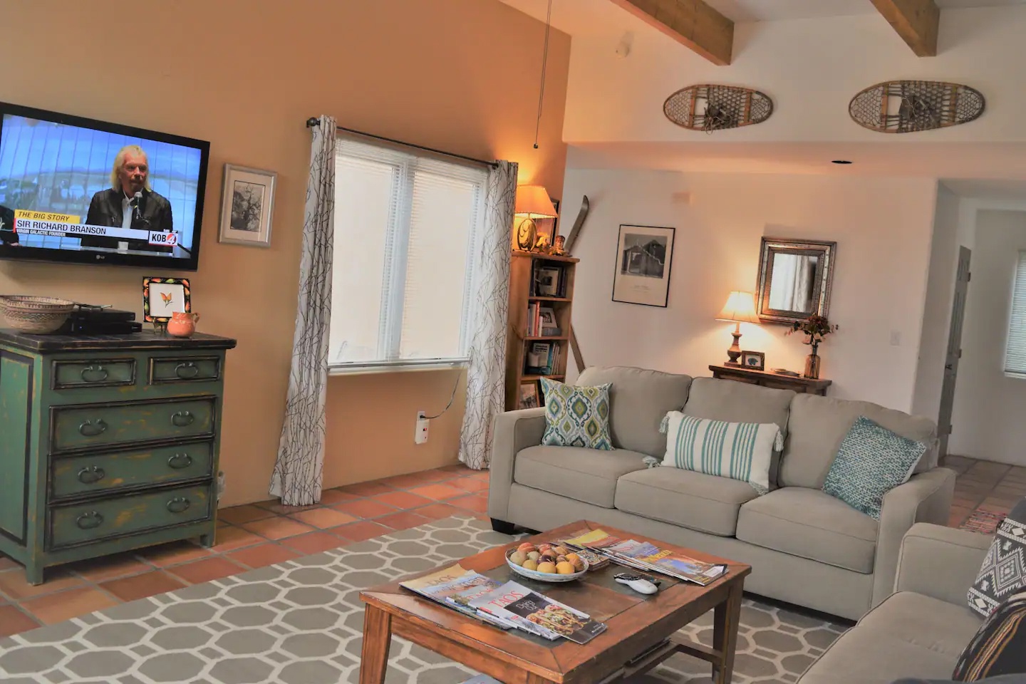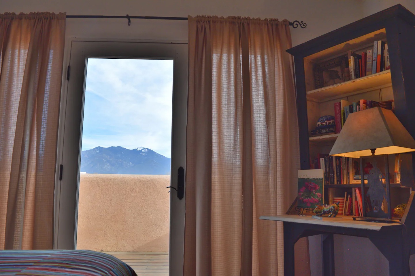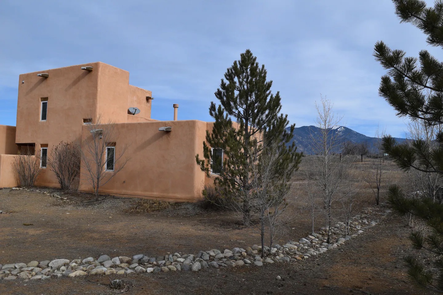This home is 1,700 sq ft of airiness. Every room has windows and most have views of Taos mountain. The radiant heat keeps the floors warm during the winter along with the gas log fireplace. In summer, enjoy two private outdoor courtyard spaces.