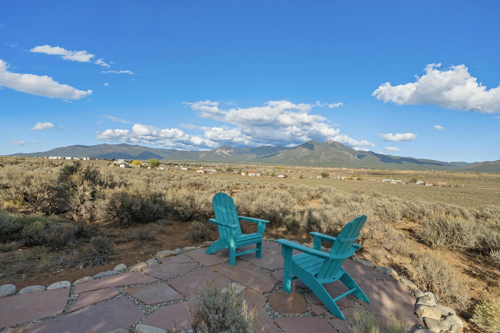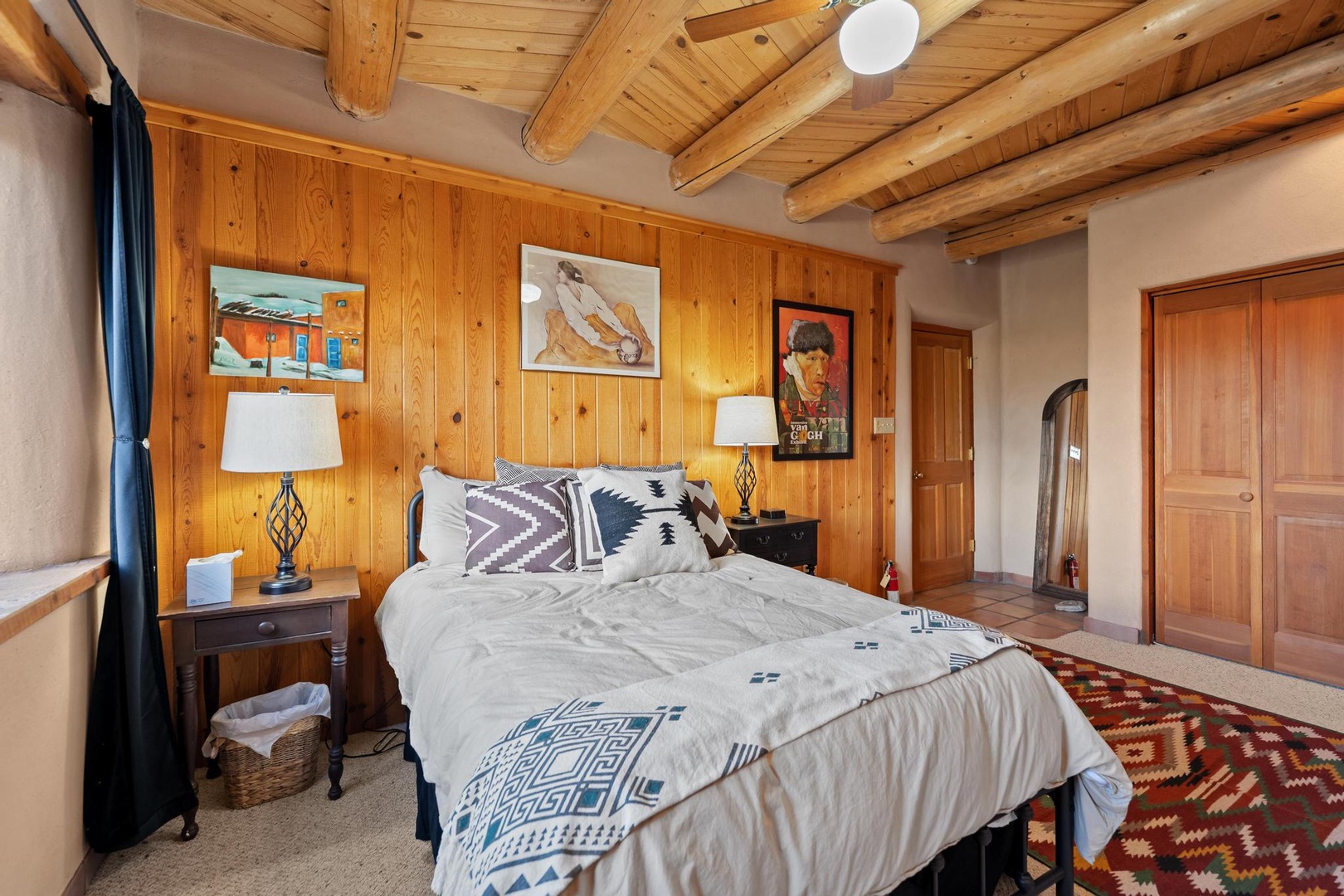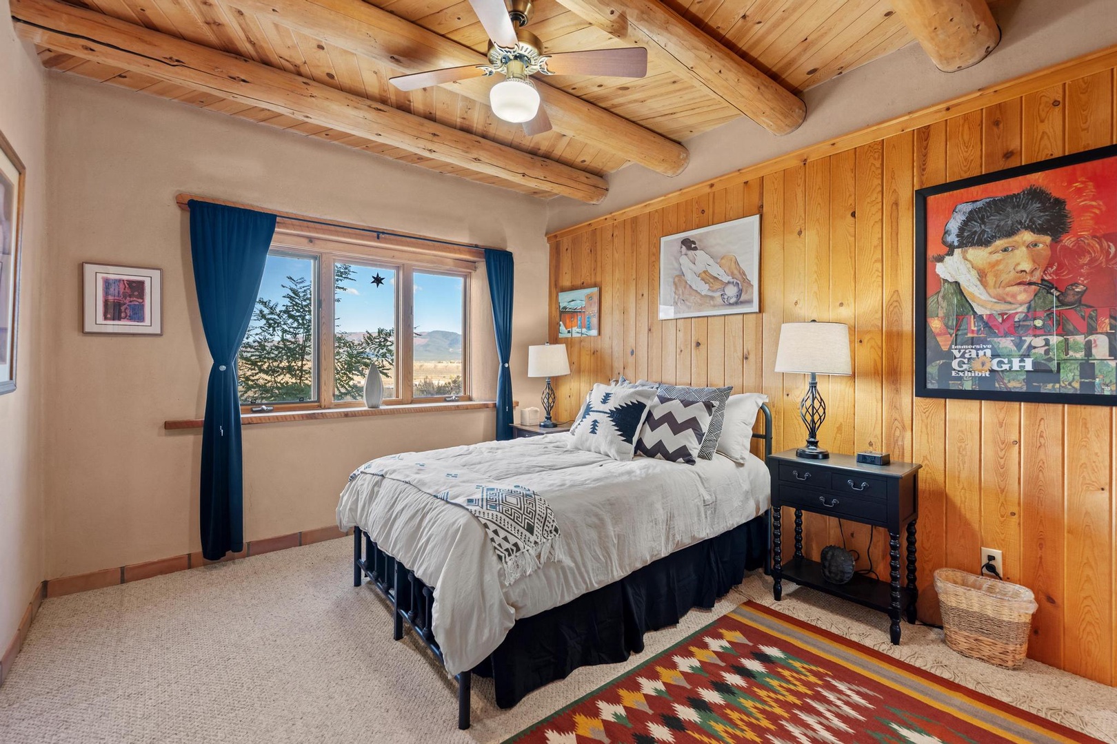 The well-stocked kitchen and adjacent dining room allow you to enjoy a home cooked meal after a day adventuring to the ski area (30 minutes away), the Taos Plaza (15 minutes away) or the Rio Grande Gorge (10 minutes away) or the many hiking trails in the area. You’ll find parking for 3 cars in front of the garage.