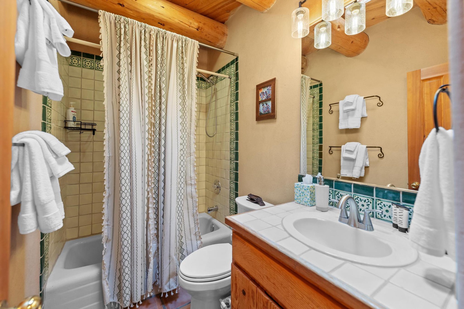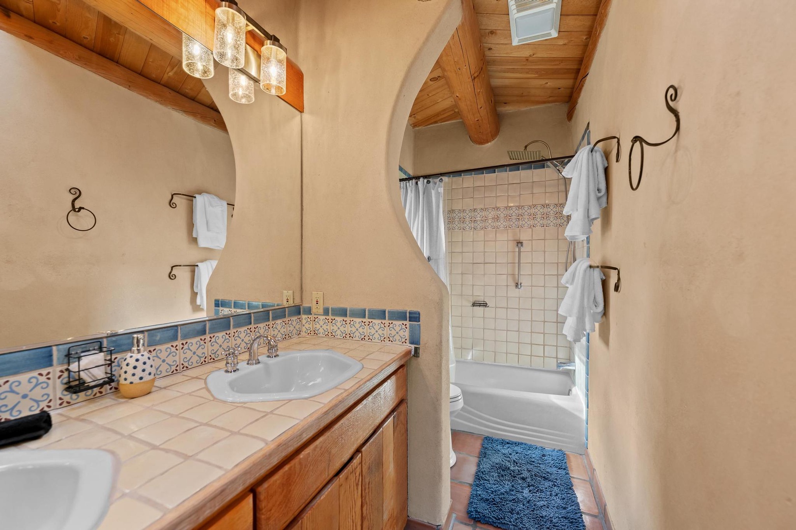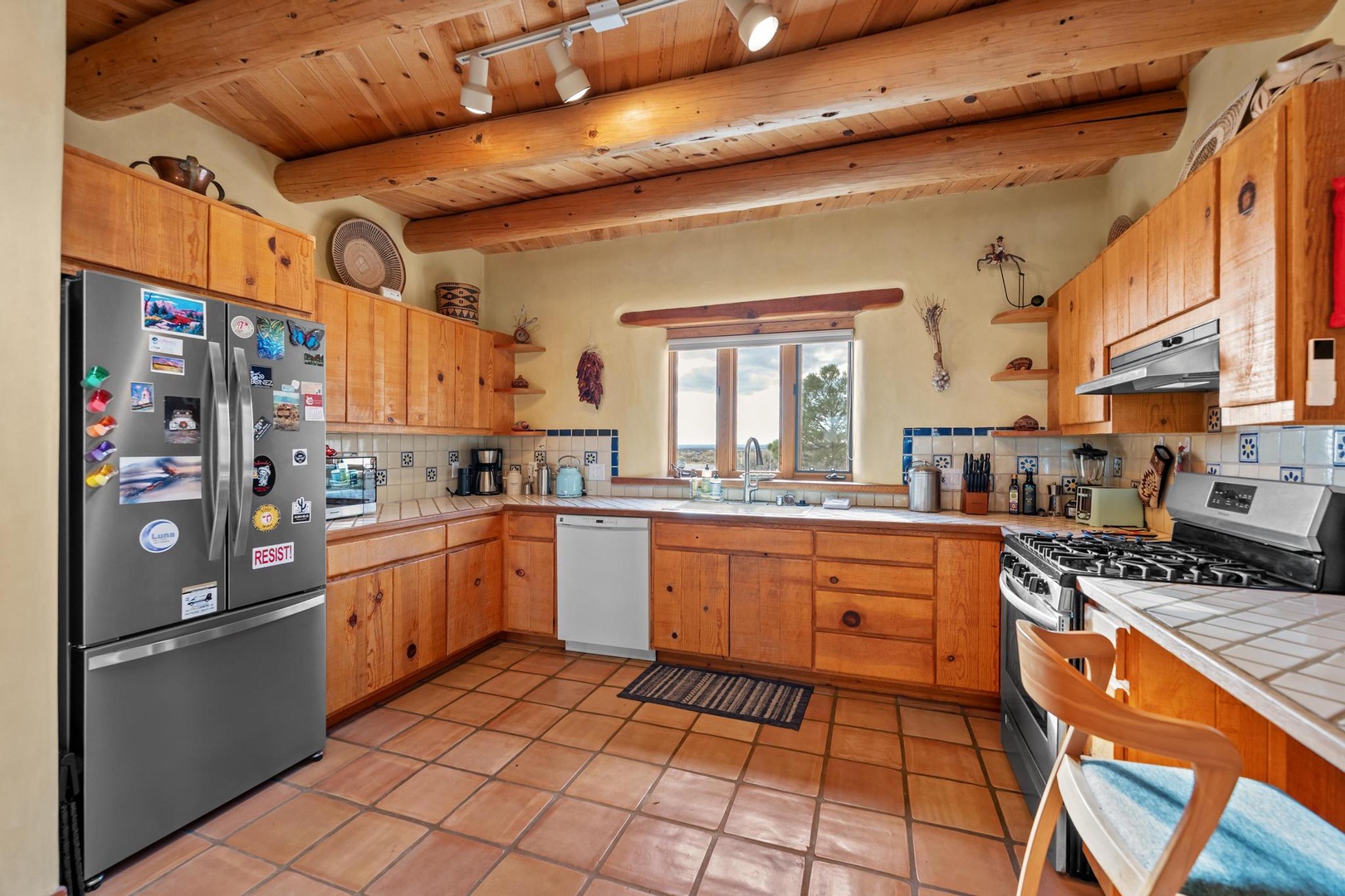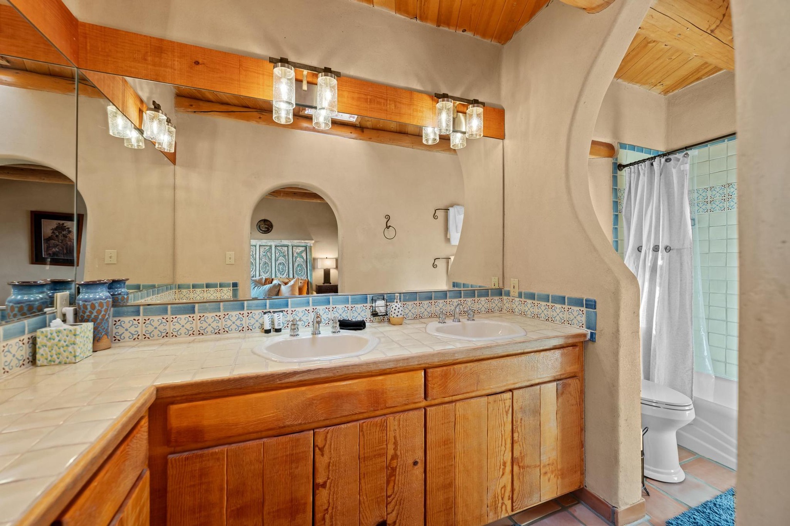 Welcome to Endless Skies, our hilltop haven constructed of straw bale and adobe. Admire the authentic southwestern details including hand-hewn viga ceilings, kiva fireplace, walled front courtyard and hand painted Talavera tile.