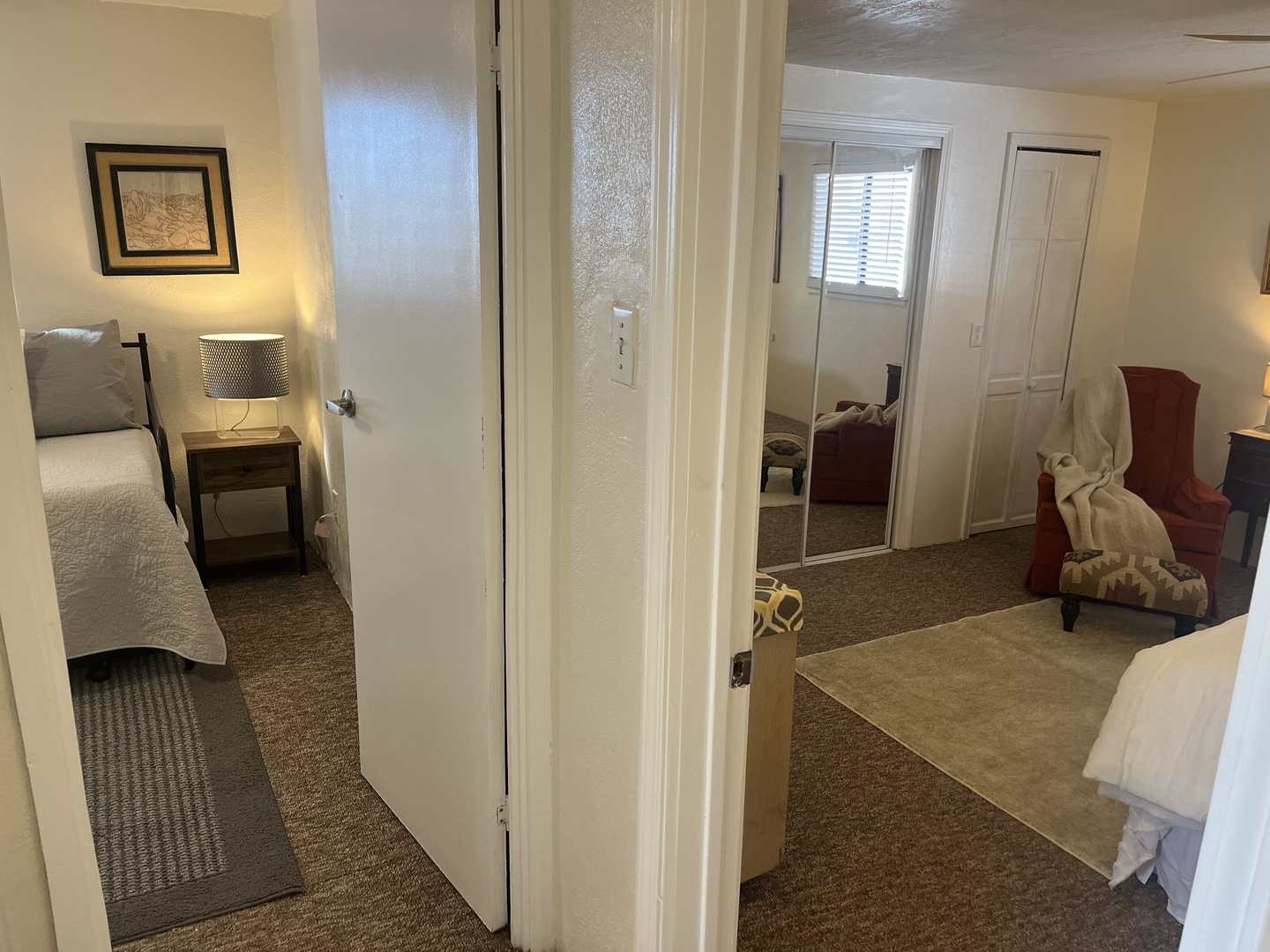 Many of the bedrooms have step downs which is a bit challenging with the elderly in our party so just be aware. The 3rd bedroom is a futon (super comfortable!) and just has a space heater.