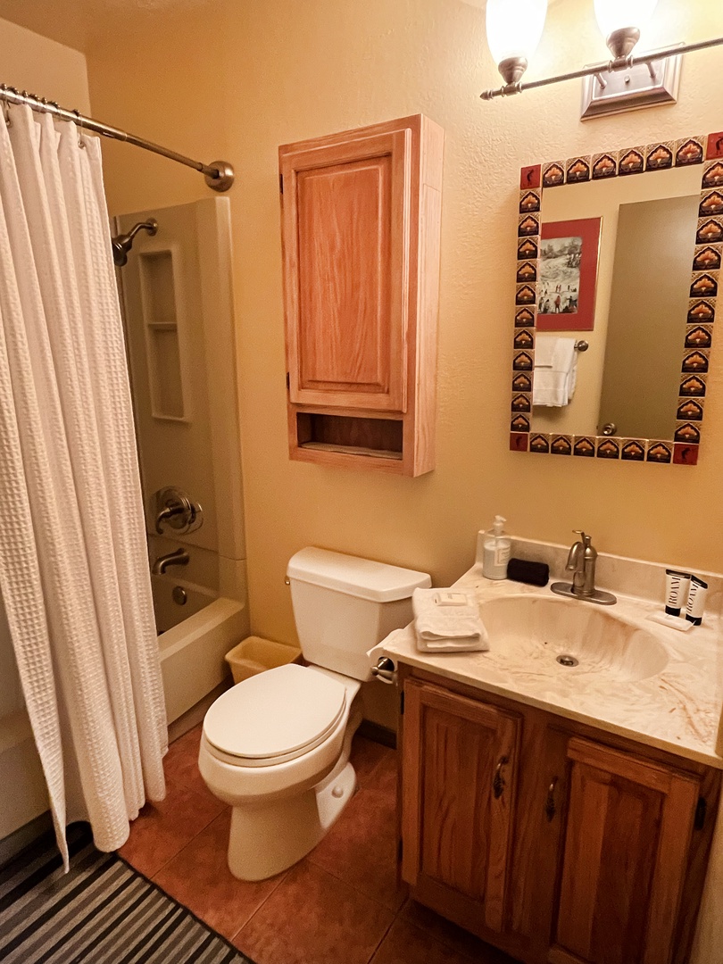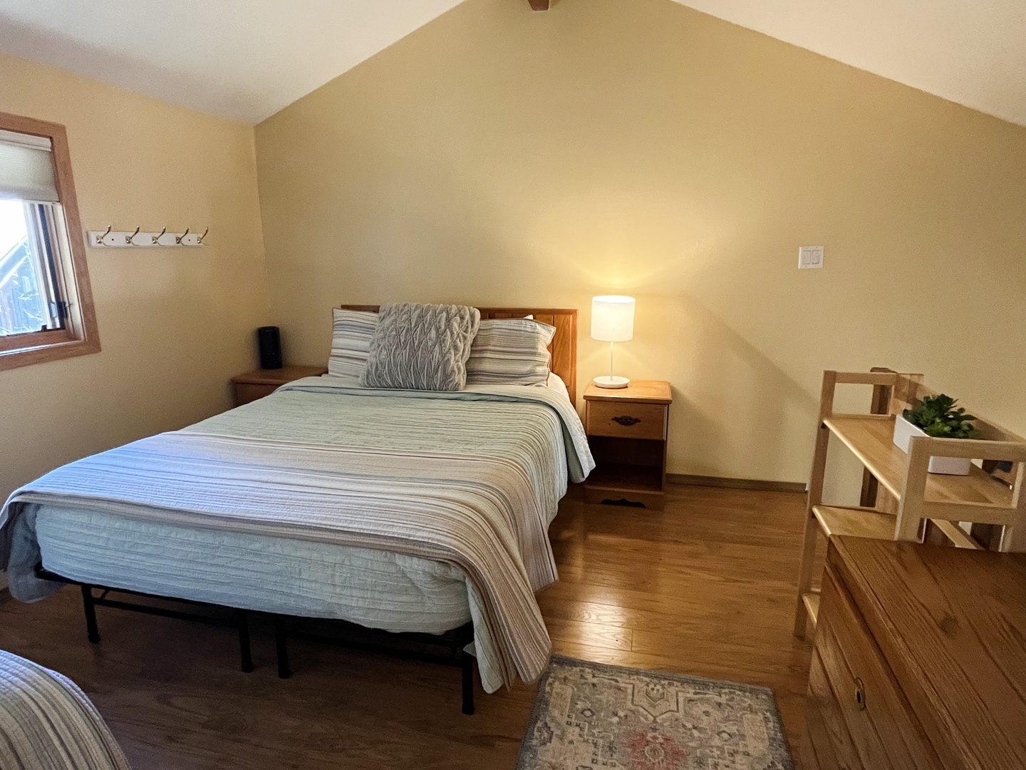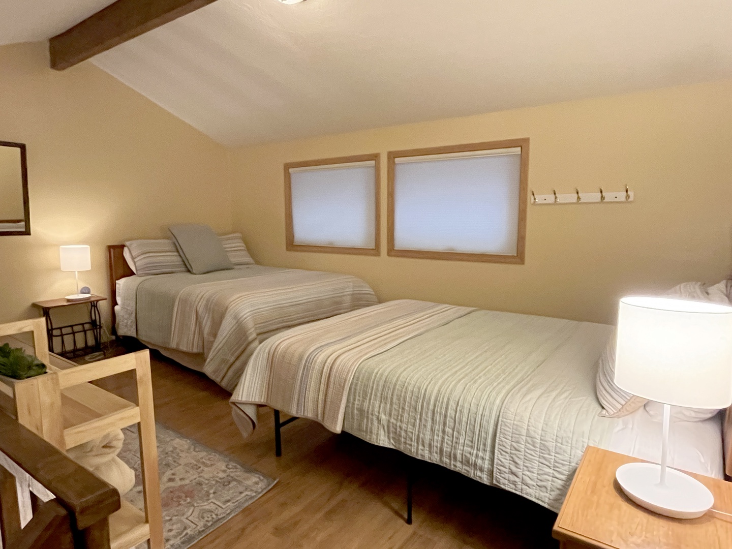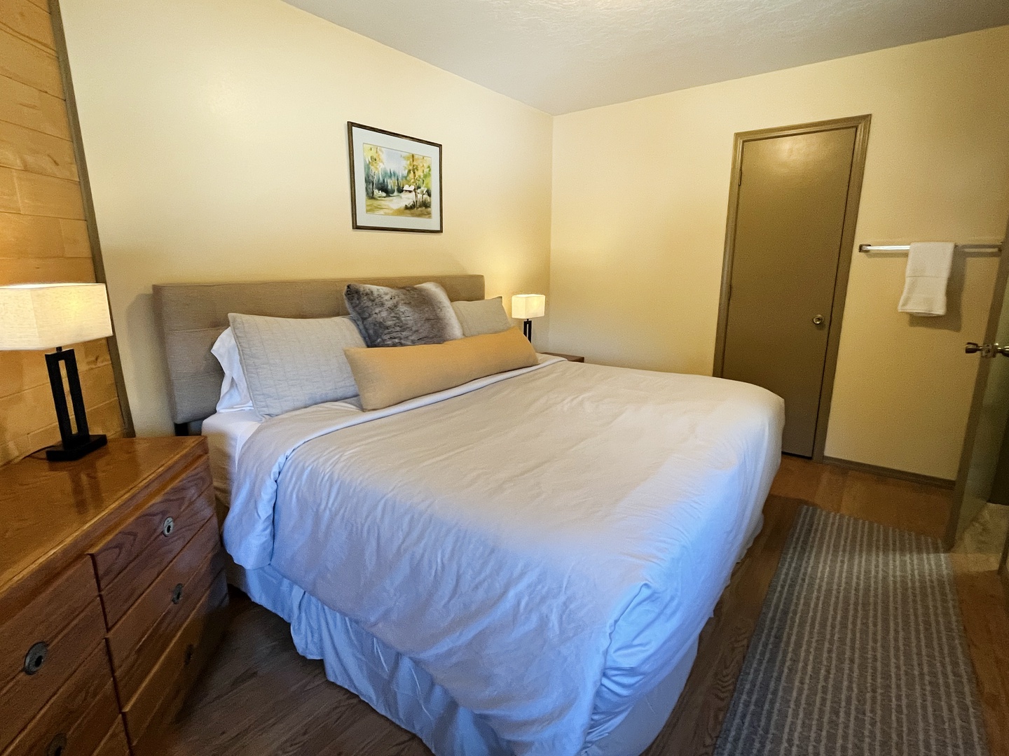 FAQ on Stairs: The first flight gets you to the bathroom and two bedrooms. That's usually where ski accessories get stored like boots in the hallway. Helmets, coats. Bedrooms have small closets. The next flight takes you to the living and dining areas, kitchen and second bath. The third flight accesses a loft sleeping space. So only the people staying in the loft do a third flight. Extra high altitude training for them.