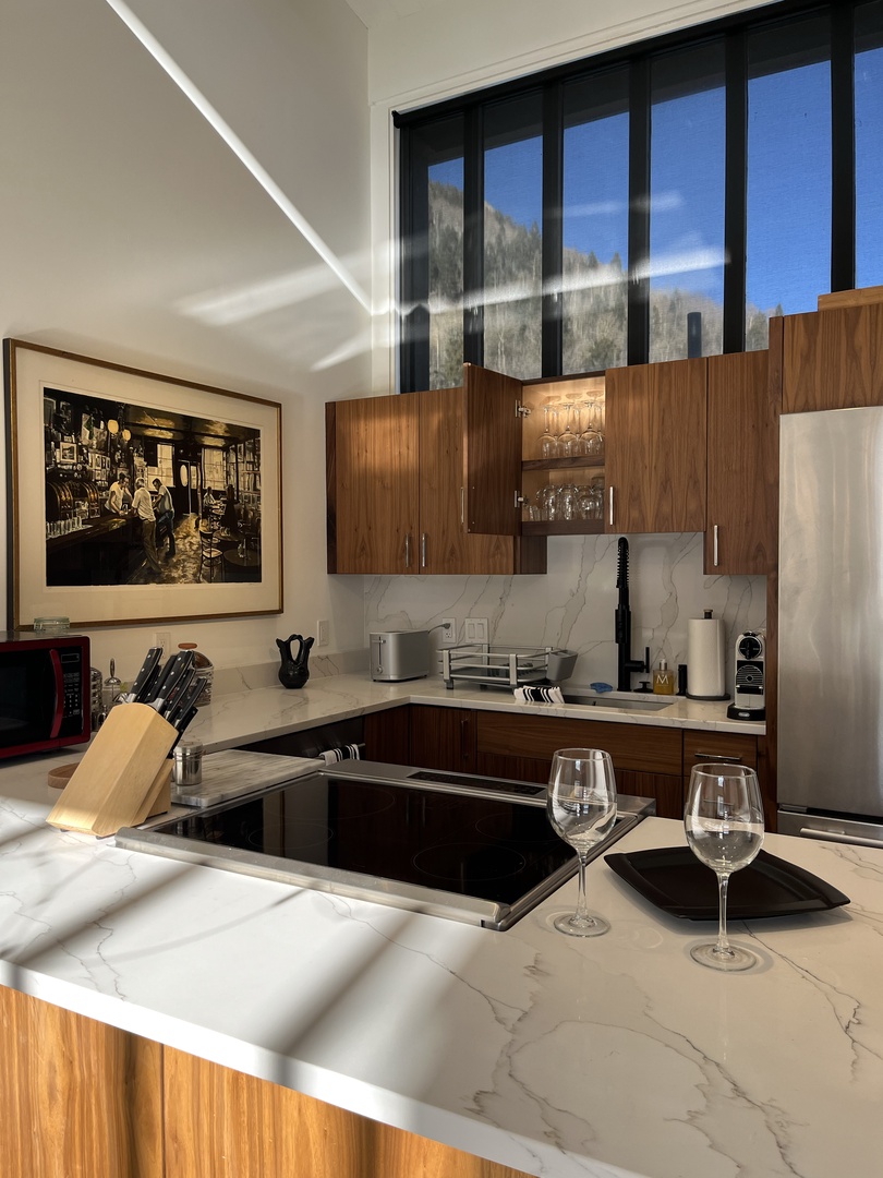 This home has everything you need to be comfortable while traveling and a top notch design flare, from perfectly comfortable beds and linens, down pillows and duvets, European lighting and fixtures, artful textiles, a sumptuous day bed, modern sofas, air tight wood burning fireplace, a supremely stocked kitchen with service ware for entertaining, Sonos bluetooth speaker, mac monitor with desk and ergonomic chair. If you love to Ski Taos and you want to be close to the lift, base area dining and nightlife this is the place.