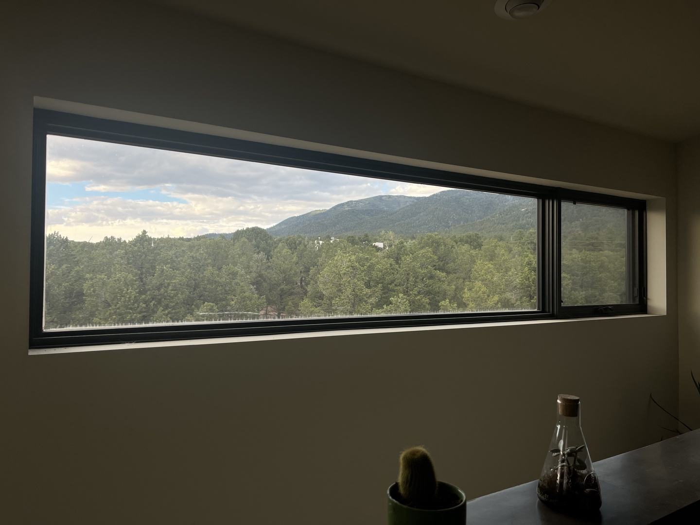 A top floor living room with gorgeous mountain vistas