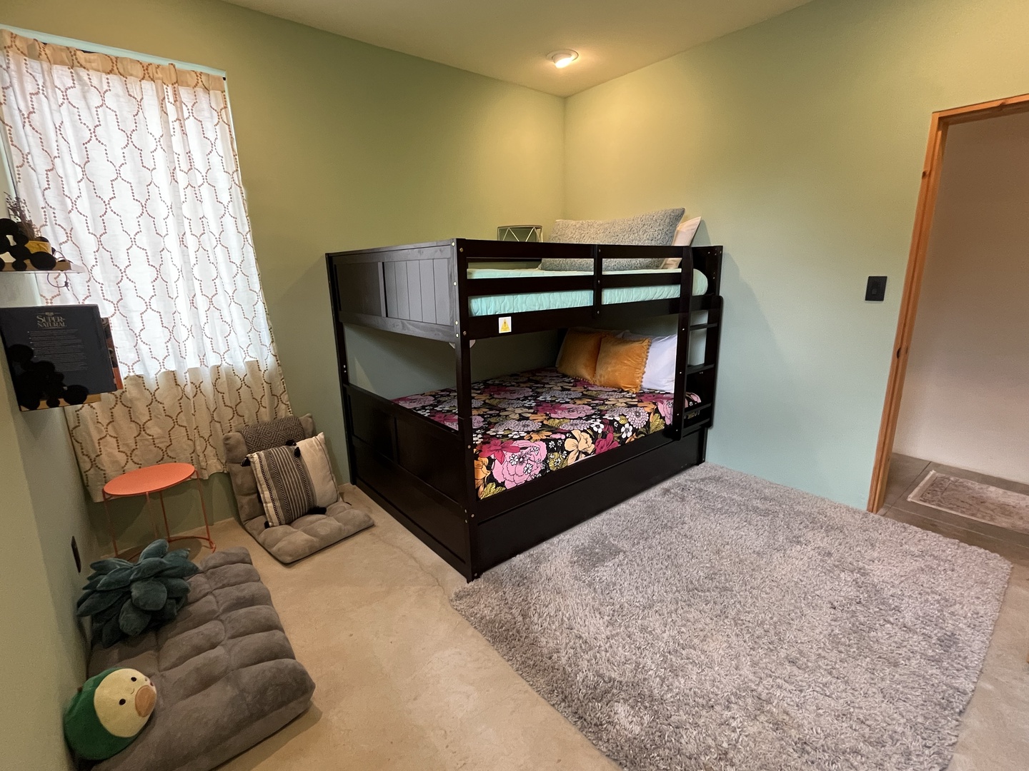 Room with full sized bunk and meditation area