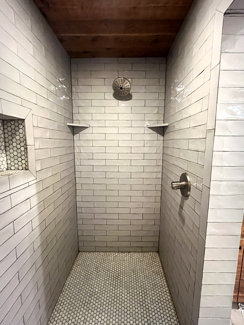 Stepping into the sleek tiled shower