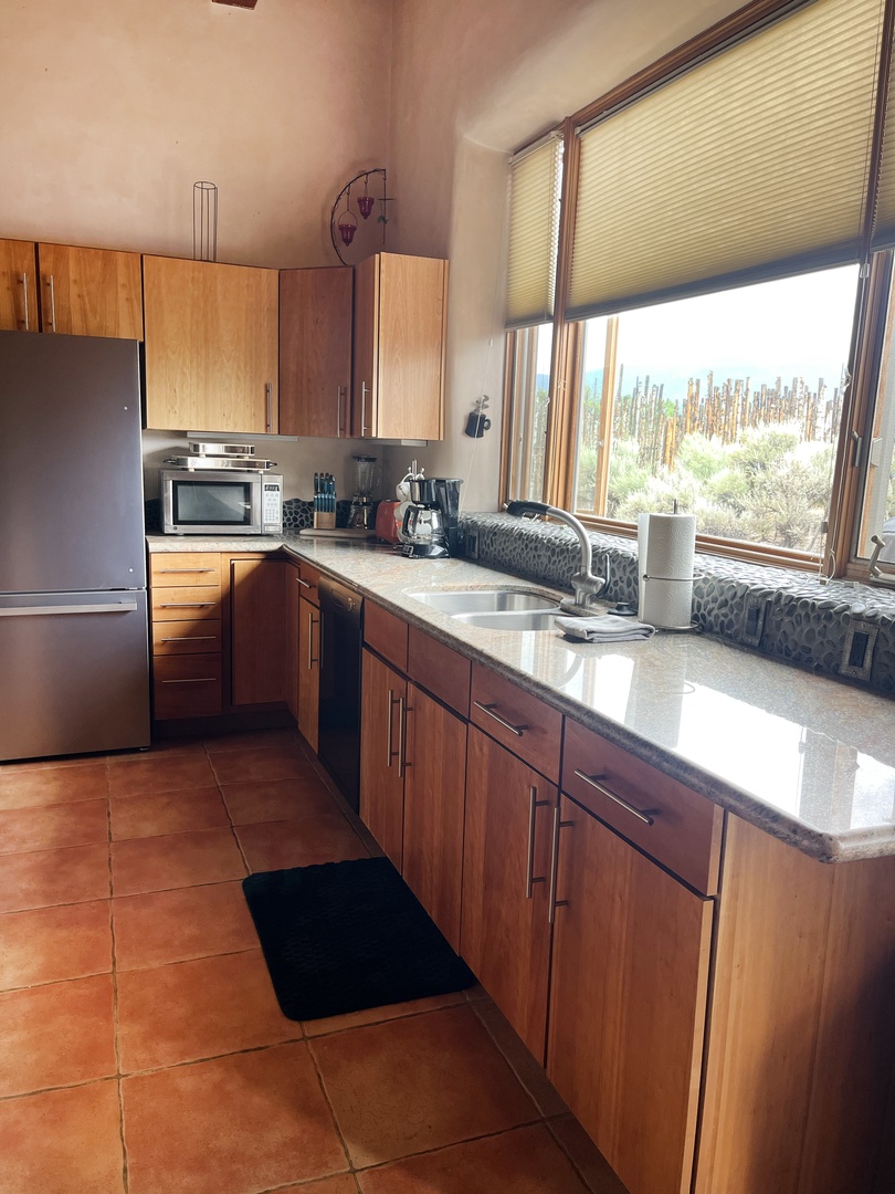 The kitchen is well equipped and easy to use. The home has every thing you need for a comfortable stay and perfect outdoor spaces for relaxing.