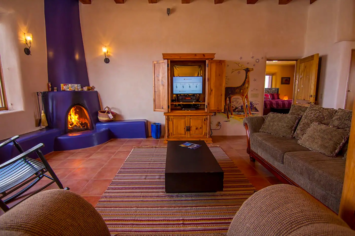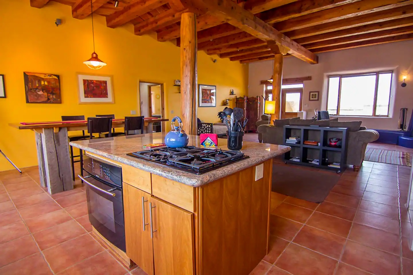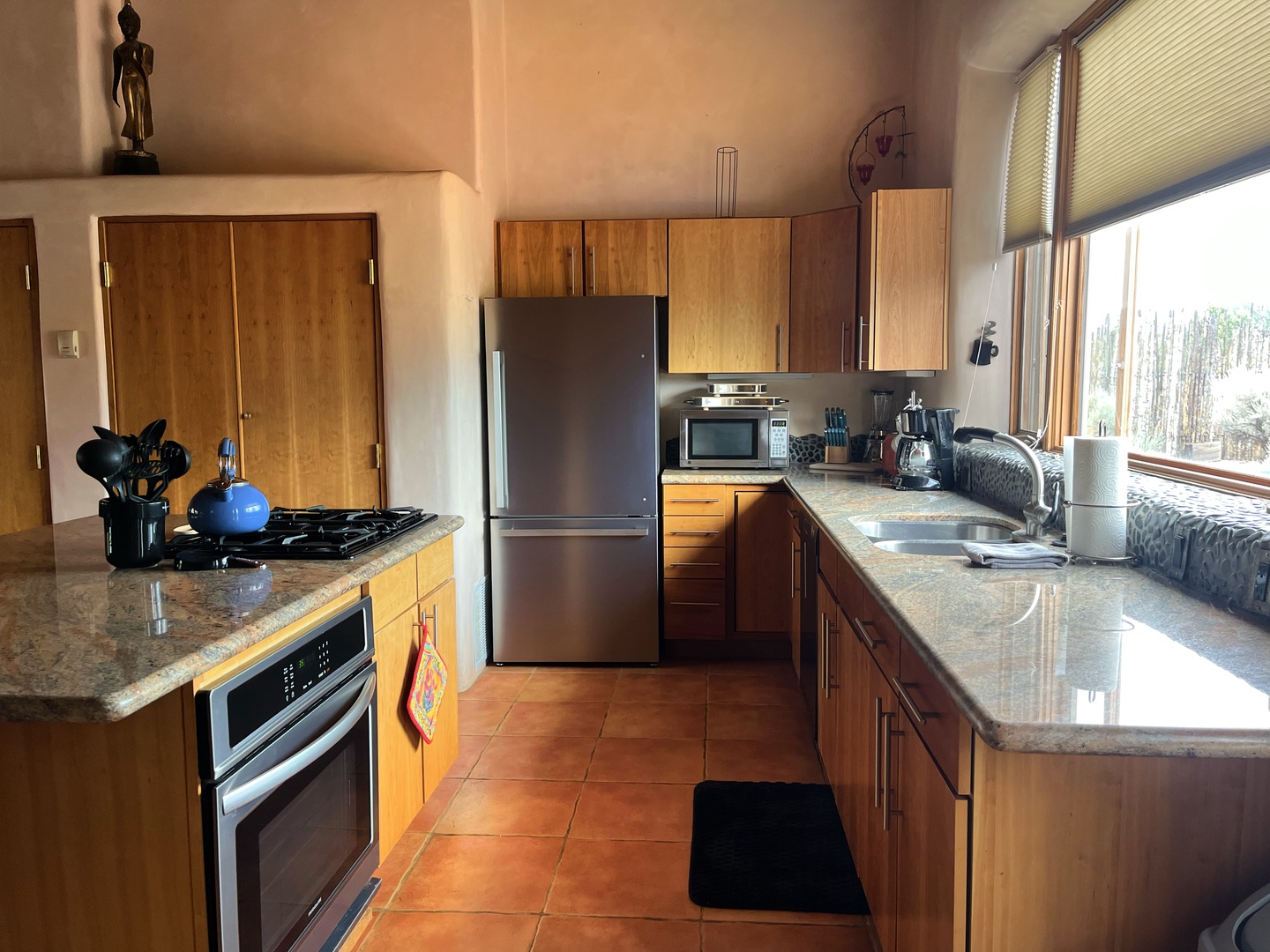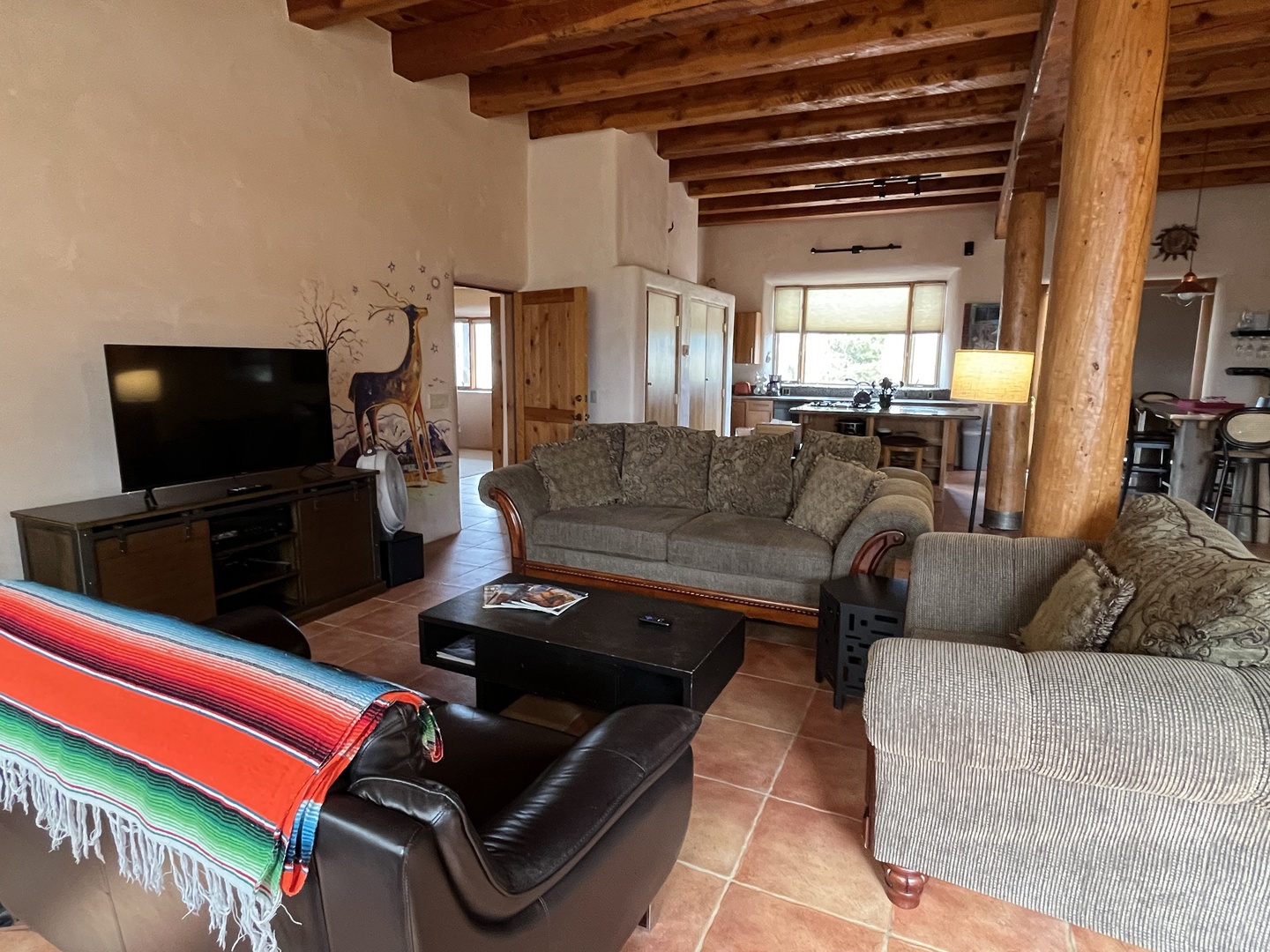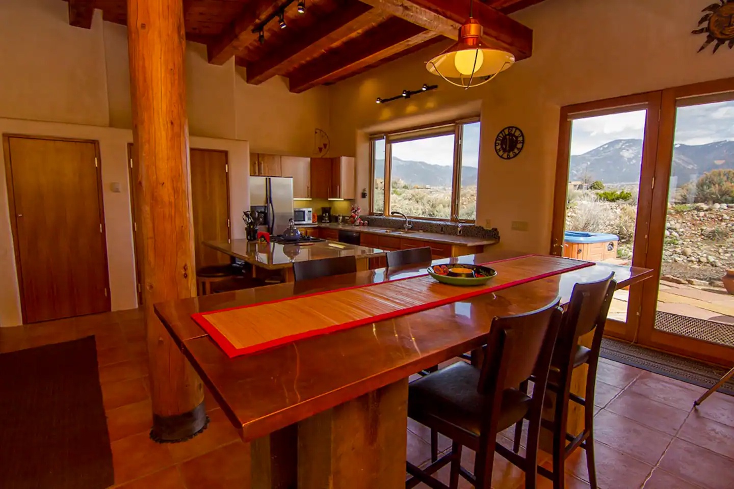 This home is 13 miles from the Taos Ski Valley and the springboard to alpine recreation in this area. It is about six miles from the center of Taos with a plethora of unique retail shops, museums, galleries and restaurants, and just two miles from the artisan village of Arroyo Seco with a natural food market, cafes, restaurants, and great authentic New Mexico retail and a variety of art galleries.