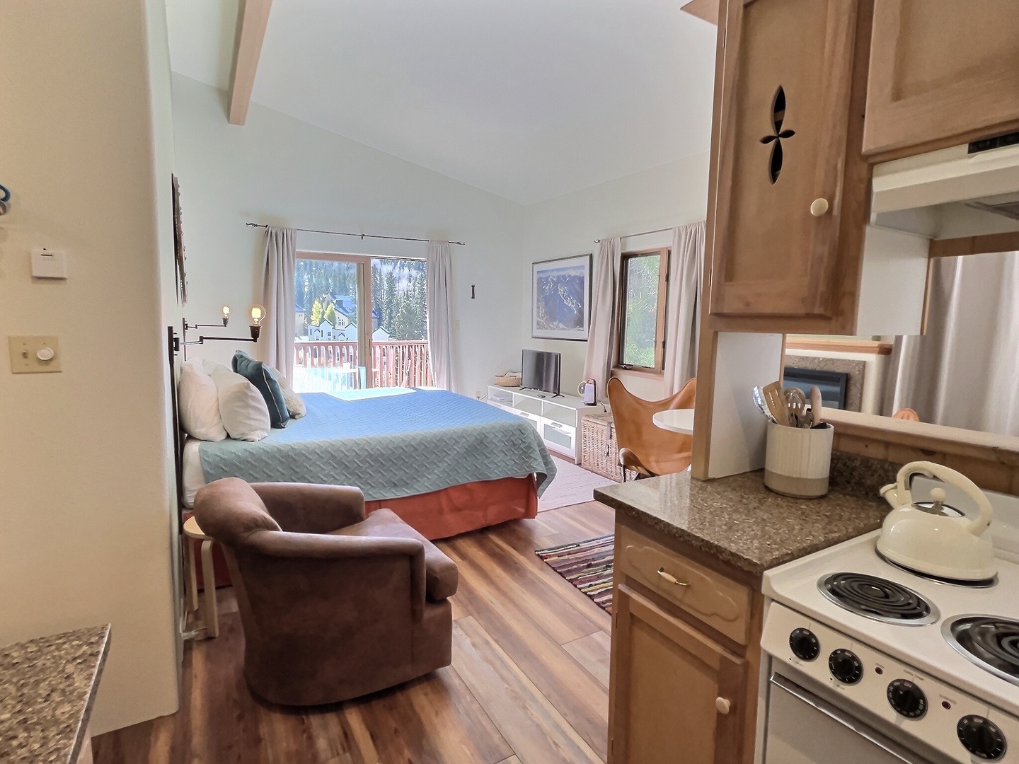 You can leave the locker room below Rhoda’s and be in your room in under a minute. This is not your place if you plan to cook your meals, however you have a perfect view of lift 1. The room was quiet and bed was comfortable.