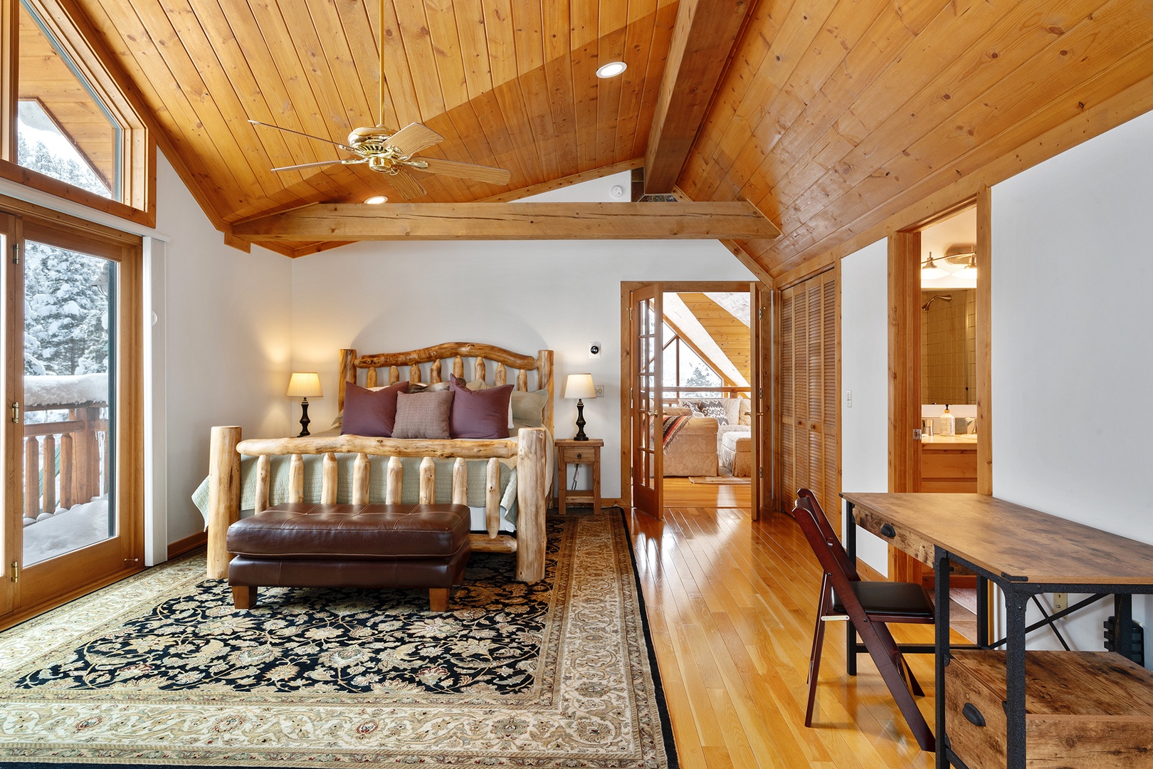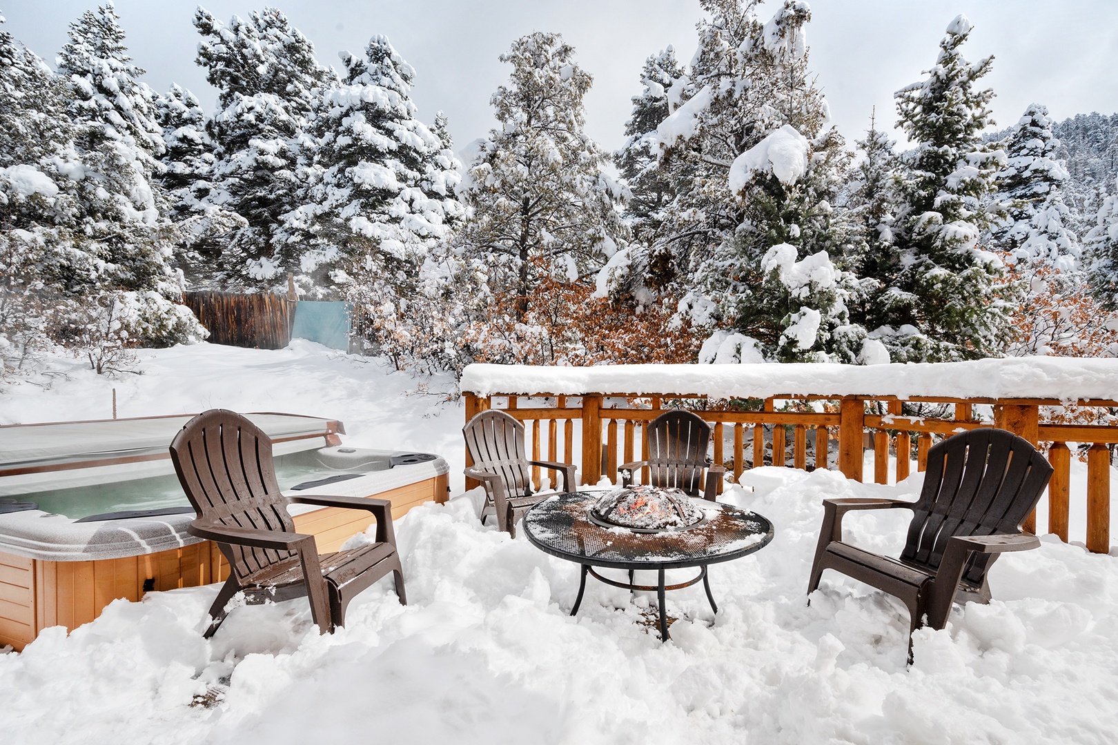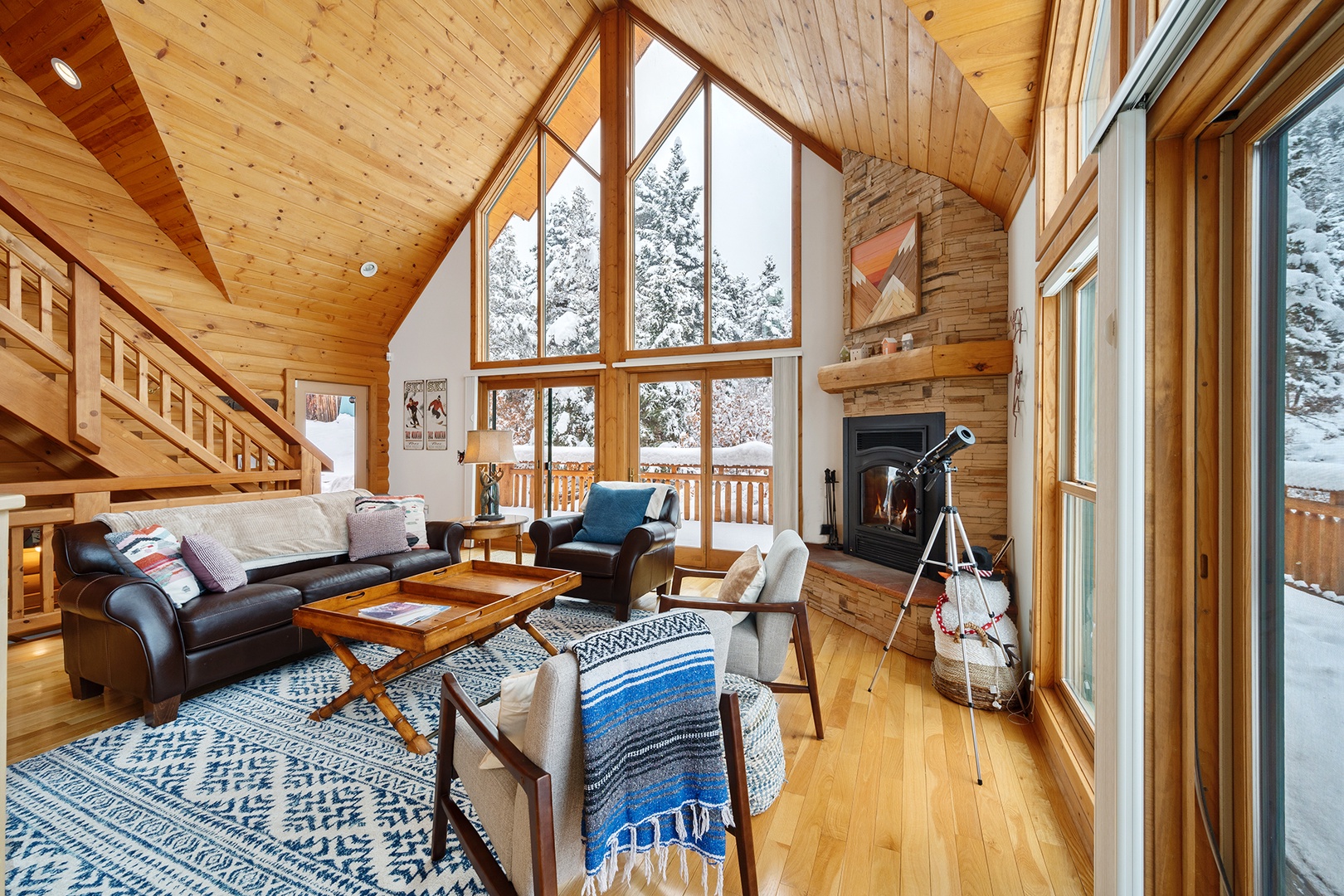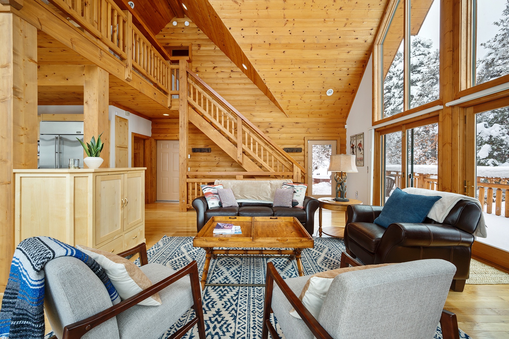 Abode offers this incredible three-bedroom three-bathroom mountain chalet property with massive mountain views in a secluded woodland setting. The three-level home is highlighted by a magnificent master bedroom, an open floor plan living space and a loft for entertaining. Soak in the hot tub after a day of skiing or cozy up to one of the home's two fireplaces. In the summer and fall, walk out the front door and easily access the El Salto del Agua trail. The home is fully stocked and includes a two-car garage.