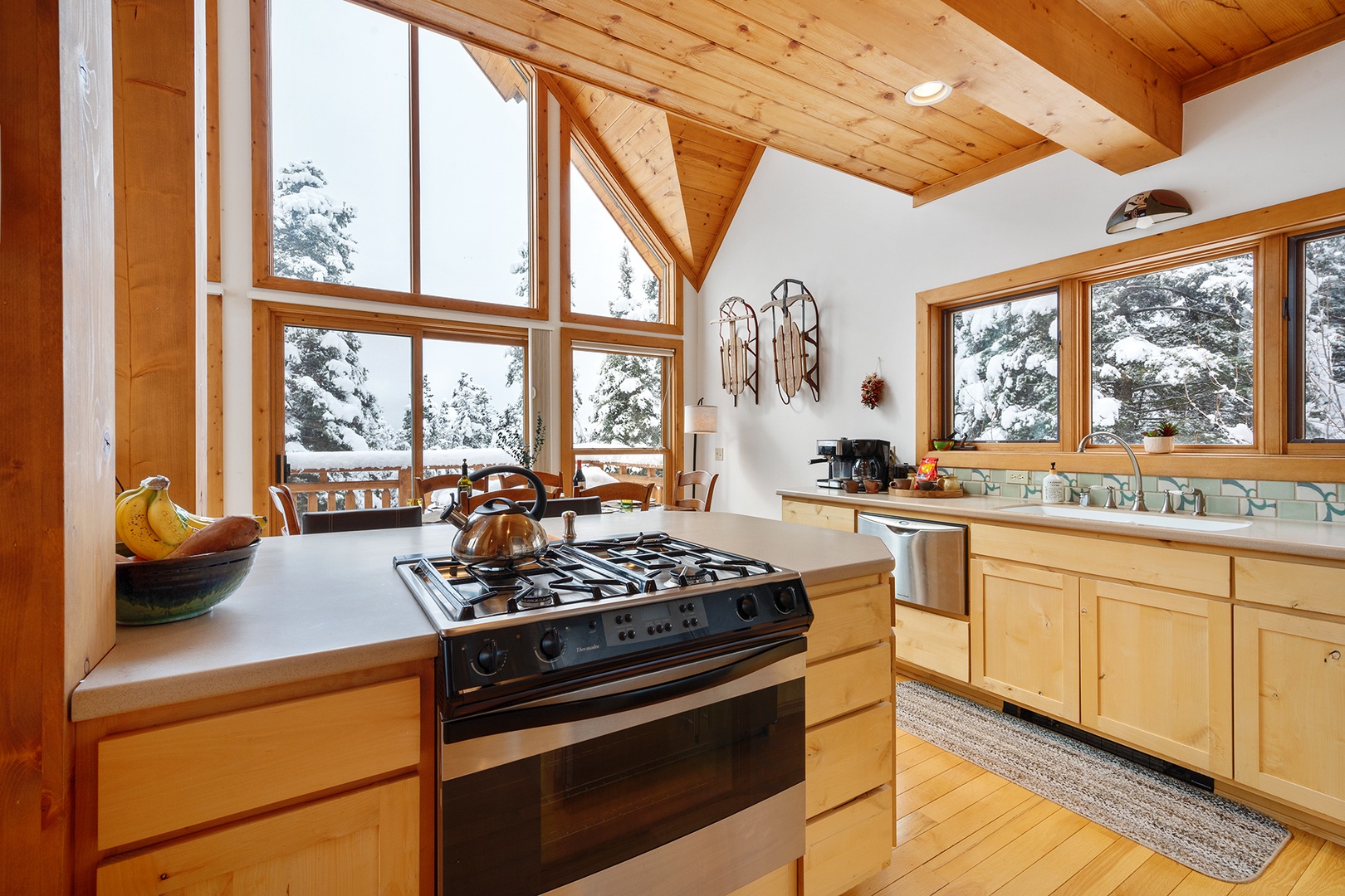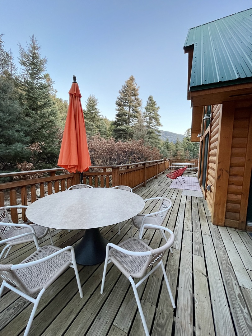 by ElizabethThe beautiful Apex windows were iconically beautiful with sunlight pouring in all day. Not only is there a unique cave to explore very close to the property, there is a BEAUTIFUL trail that lines a creek just down the street which is hands down the most beautiful trail I’ve ever experienced. The bed & pillows were super comfy. I loved working and watching movies in the entertainment nook. I made breakfast, lunch and dinner in their kitchen which had all the things. Lastly, winding down in the hot tub was perfect, even saw a shooting star which made it a relaxing, magical experience. Thanks Caitlin and Greg!