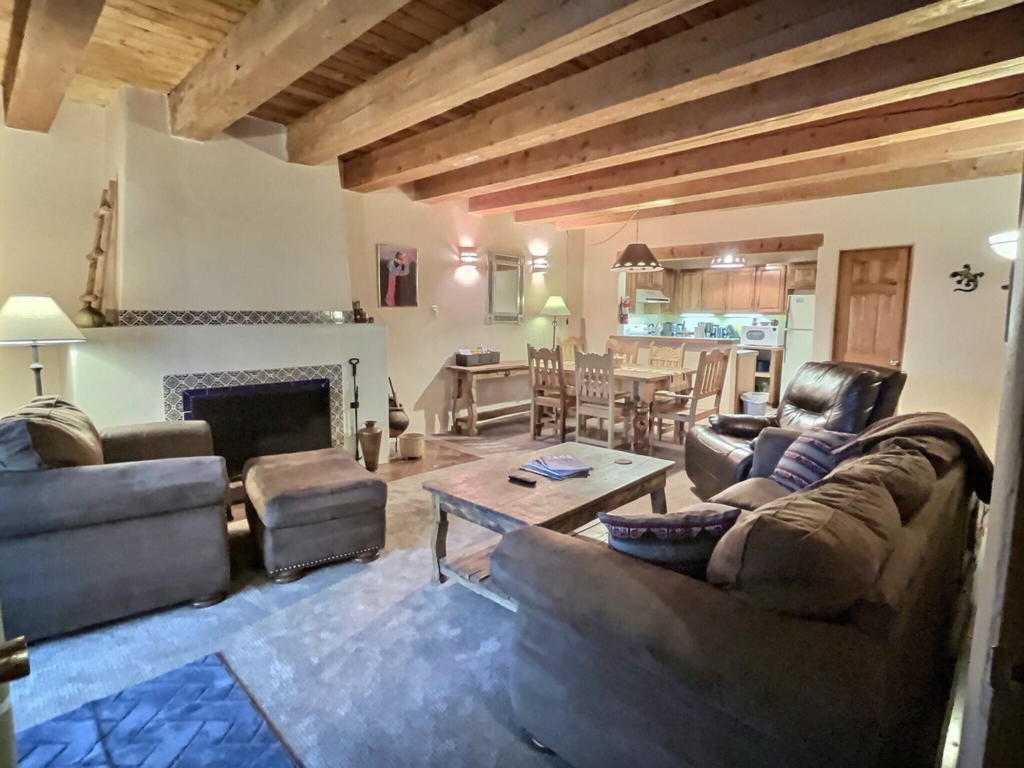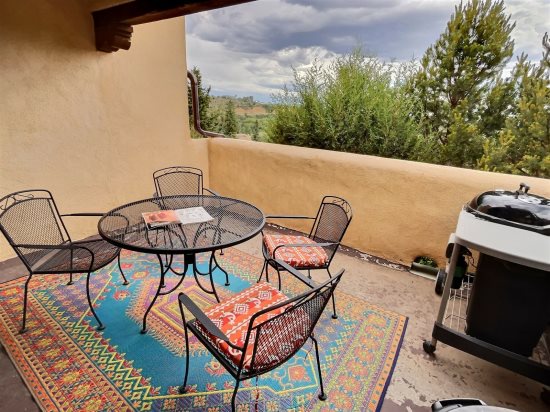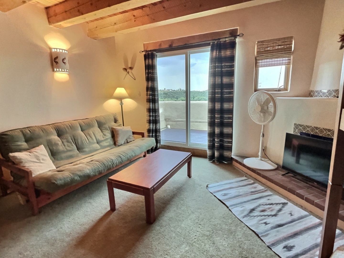 by HyeNice view and nice neighbor. Caring host. Close driving distance to the center of city where grocery stores, coffee, and restaurants are. We visited for ski trip. It was about 15 mns to Taos. It is a three story condo, each 2nd and 3rd floor have beds and bathrooms. For this reason, we each had seperate bed and bathroom which provided privacy. Comfy couch with recliner with fire place with another bethroom on the first floor. Be ready for some step work out if you are not used to going up stairs. Kitchen has almost everything you can ask for.