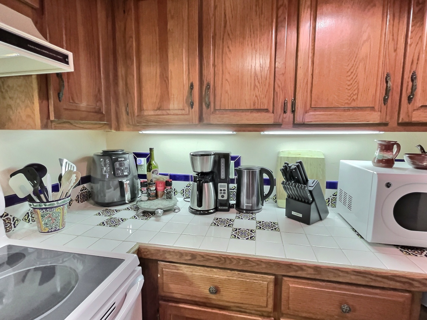 Classic kitchen is well stocked with everything needed to prepare and serve meals